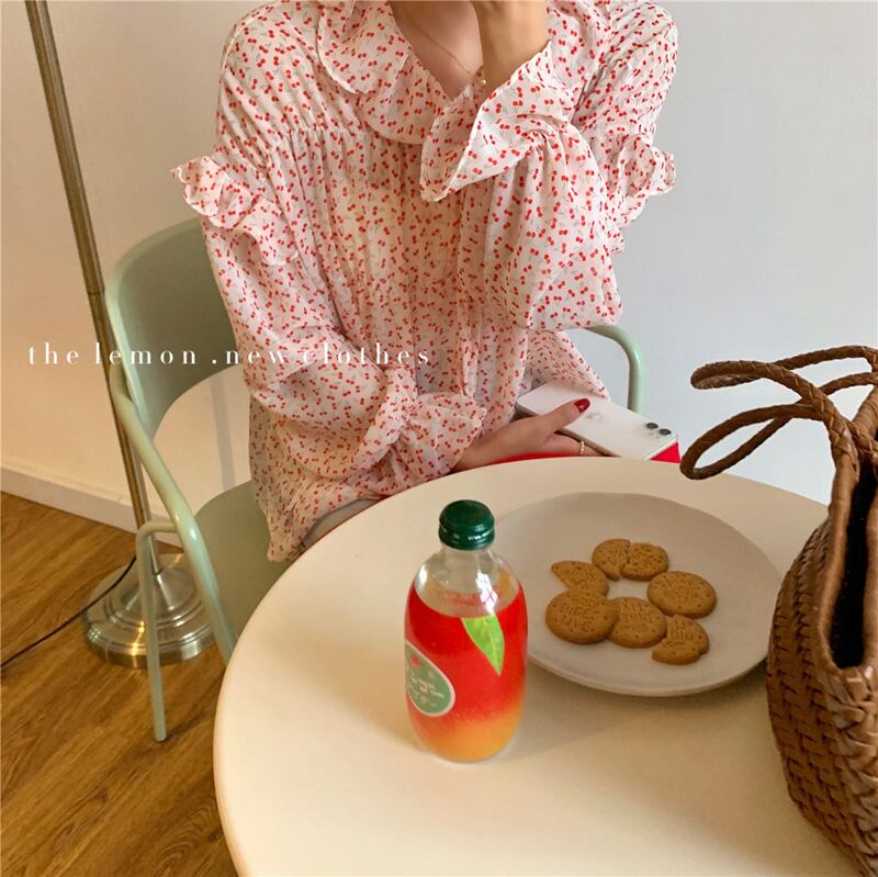 フローラルシャツ ルーズシフォンスプリングブラウス レディース ロング 春物 花柄 ビッグFスモールZ韓国94952992221