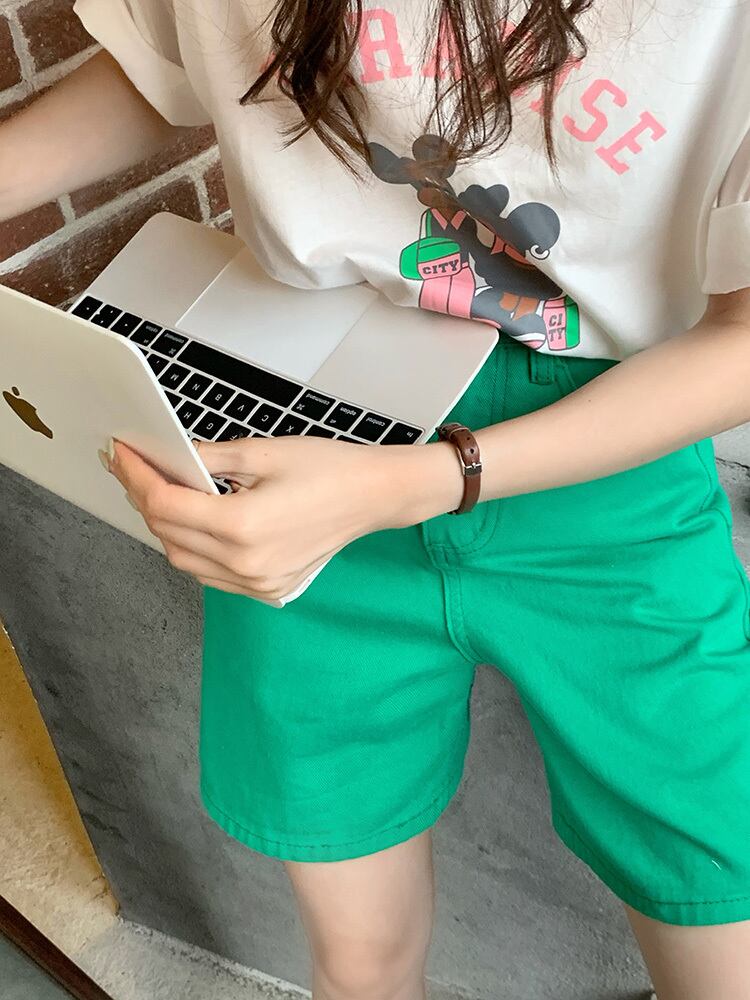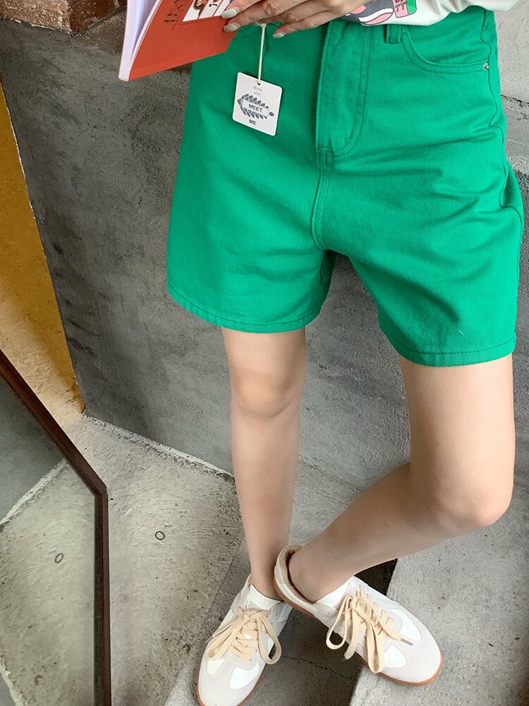 ソリッド カラーショーツ サマーカジュアルハイウェストウェストルーズスリムポケットパンツ 夏物 ブルマー ソリッドカラー ビッグFスモールZ韓国79760558116