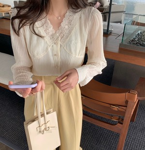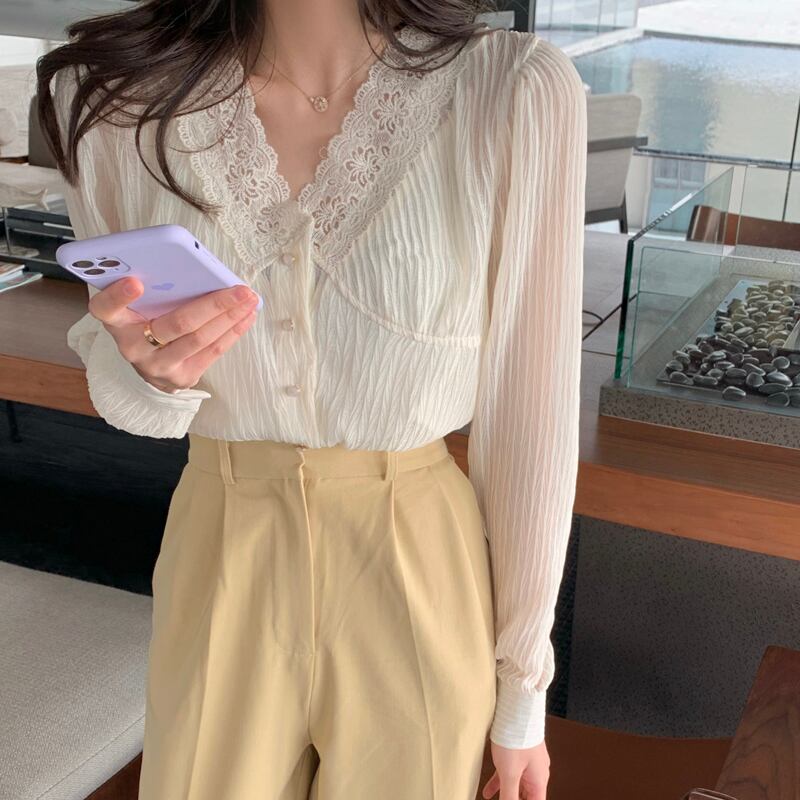 トップス レースVネックシャツ スプリング 春物 ビッグFスモールZ韓国15776456247