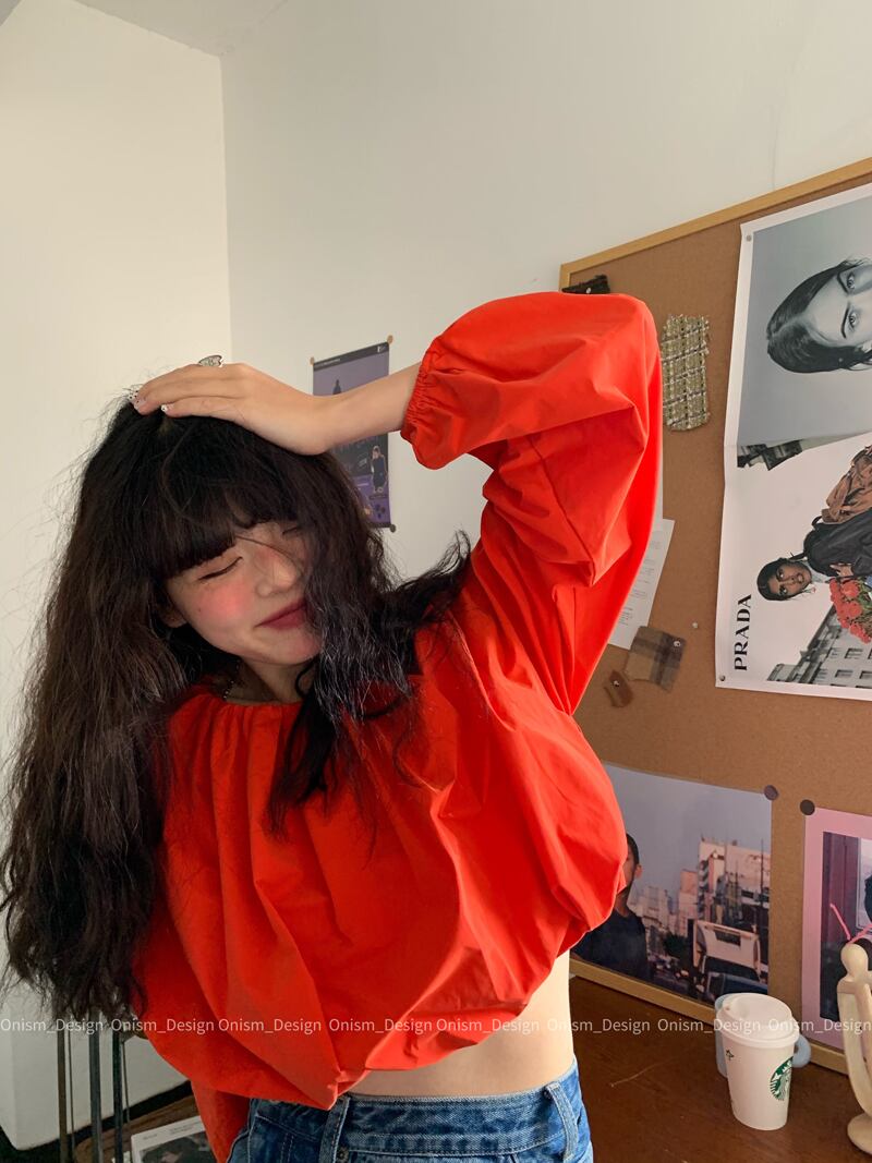 Flowerデザイン ウェストトップス カラープルオーバー スリーブシャツ スプリングレディース 春物 ピュア フラワーデザイン ビッグFスモールZ韓国74832255618