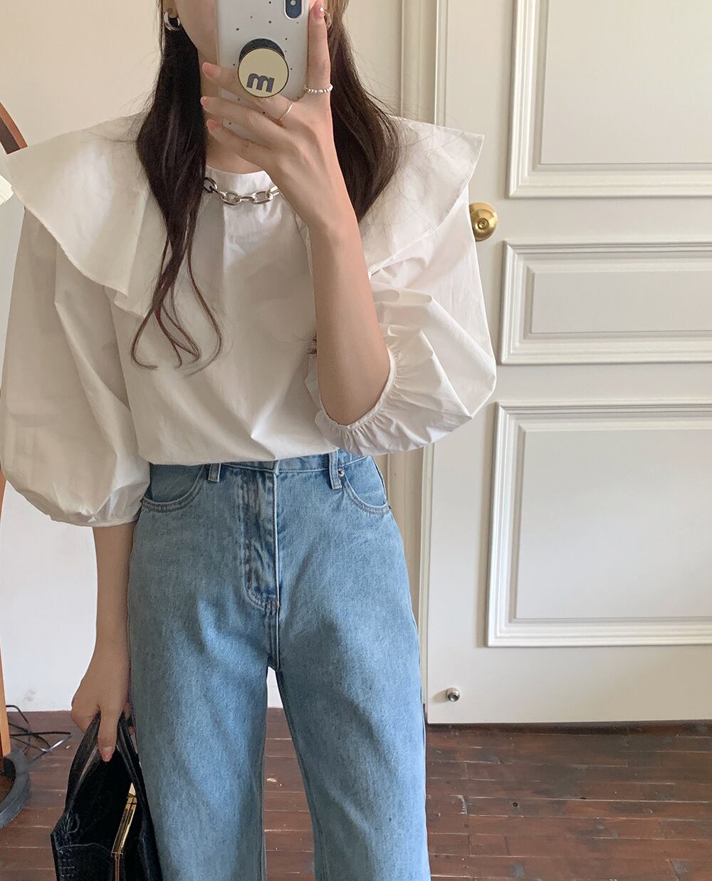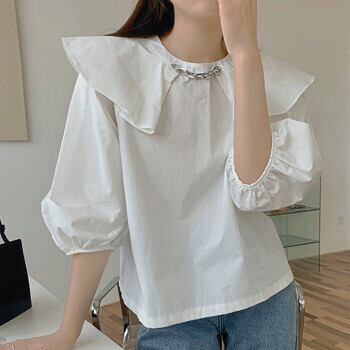 チェーン メタルカラールーズスリーブシャツ サマープルオーバー トップス ランタンスリーブ 夏物 ピュア ビッグFスモールZ韓国15364276719