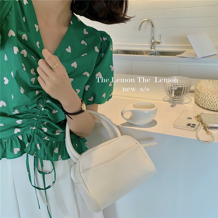 ギャザースリーブシャツ サマーVネックプリーツ半袖トップス ショート ハーフスリーブ 夏物 ビッグFスモールZ韓国26749639454