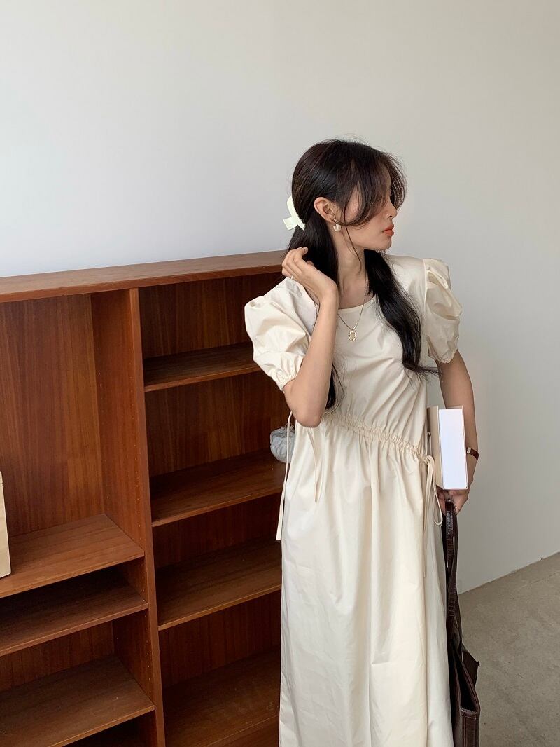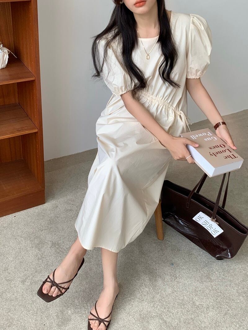 サイドギャザーロングスカート スリーブ半袖ドレス スプリングサマーレディース ショート ハーフスリーブ 春物 夏物 ビッグFスモールZ韓国27619539137