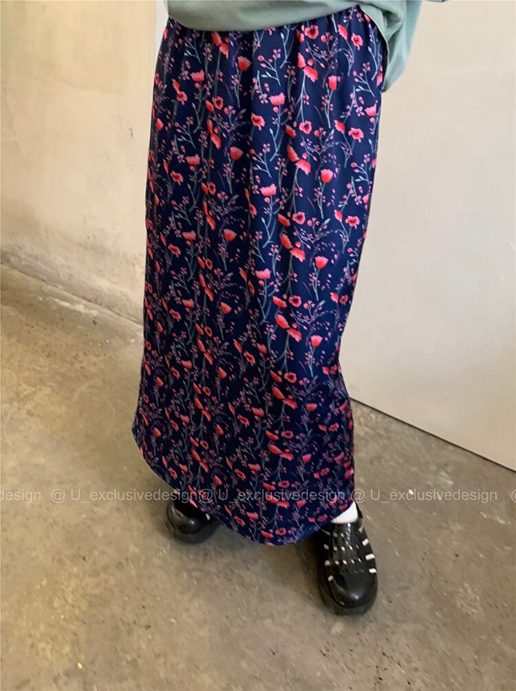 フローラルスカート サマールーズウェストロング 夏物 花柄 ビッグFスモールZ韓国87989050481