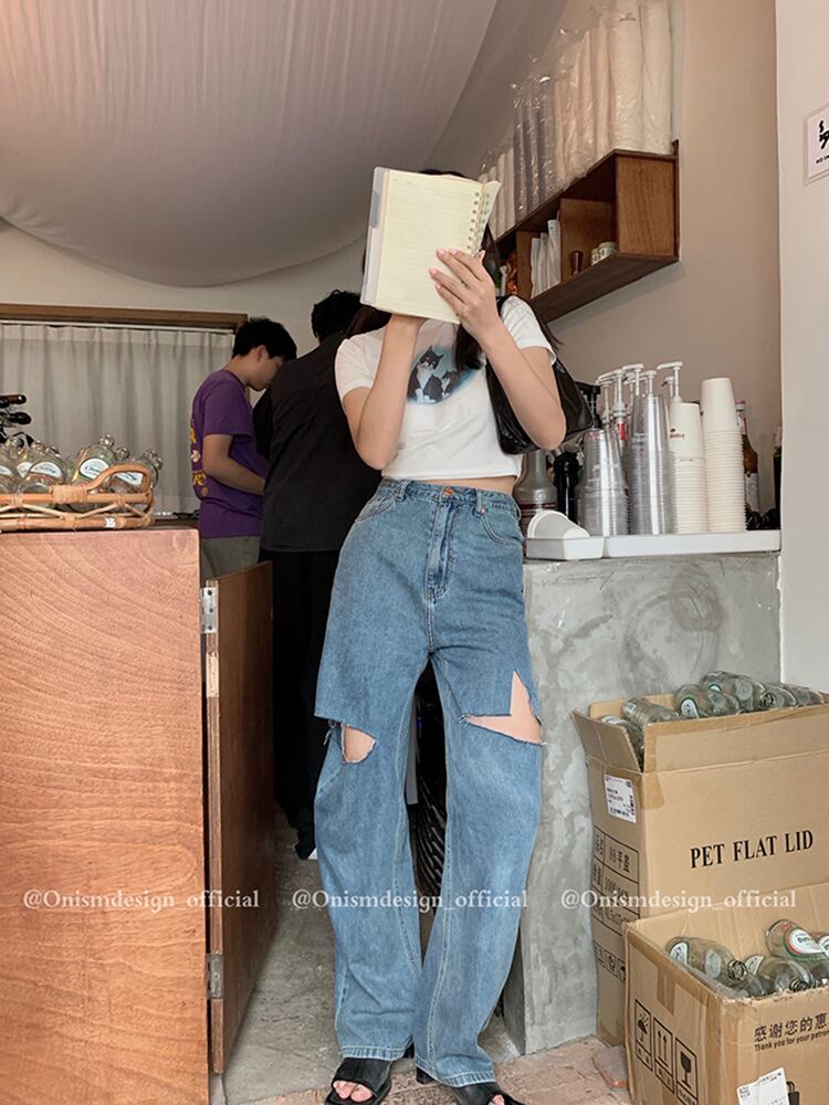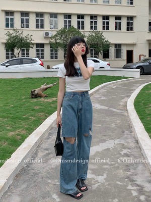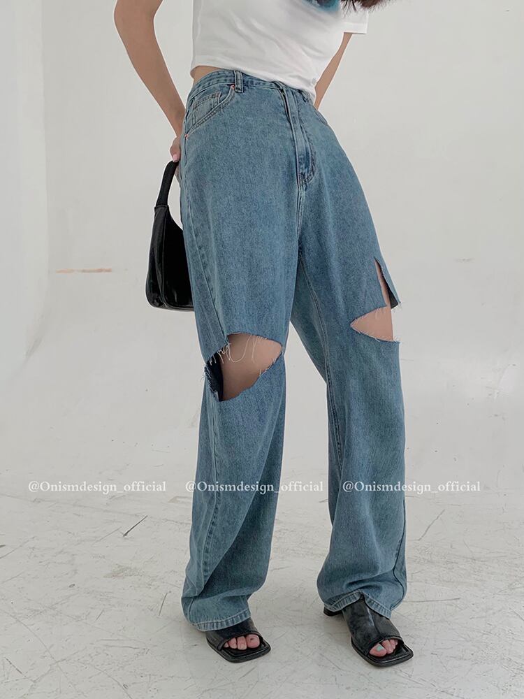ジーンズ レディースサマー薄手ウェストパンツ 夏物 ワイドレッグ ワイドパンツ ビッグFスモールZ韓国87518591431