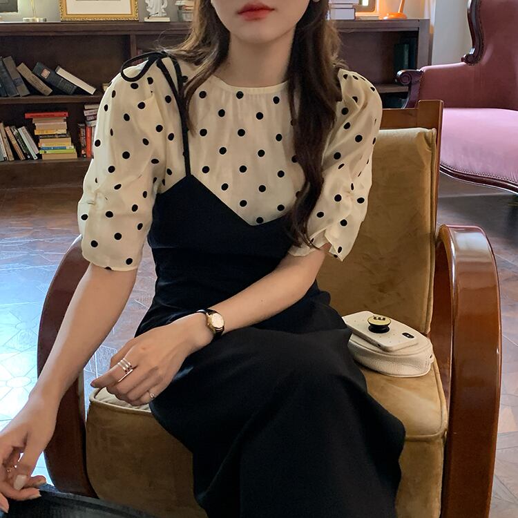 ドレス サマーラウンドネックブラック 夏物 Oネック ビッグFスモールZ韓国84592161957