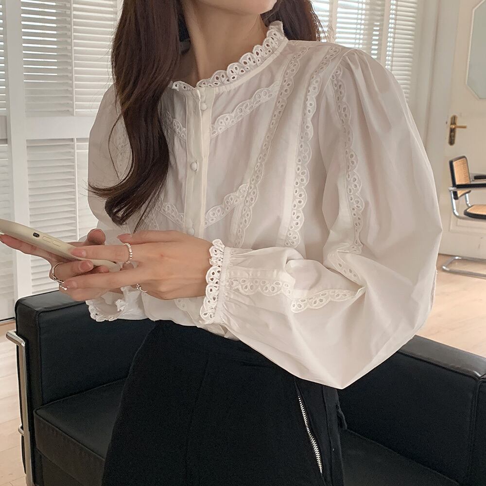 レースカラー長袖スリーブシャツ スプリングスタンダードトップス レディース ロング レトロ 春物 ビッグFスモールZ韓国25621071323