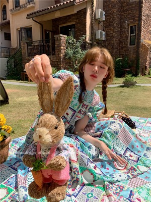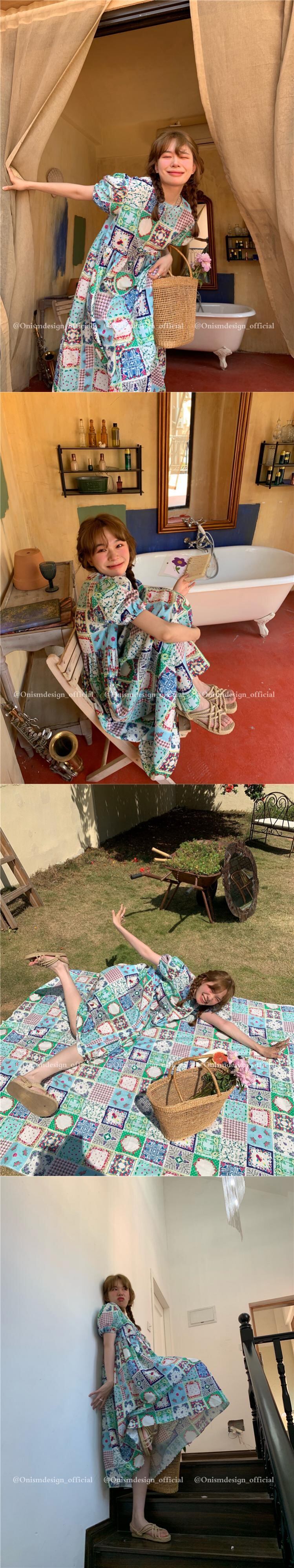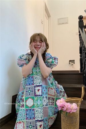 カラー格子柄ルーズドレス サマースタイル薄手ラウンドネック半袖スリーブAラインロング ショート ハーフスリーブ 夏物 Oネック ビッグFスモールZ韓国74528883855