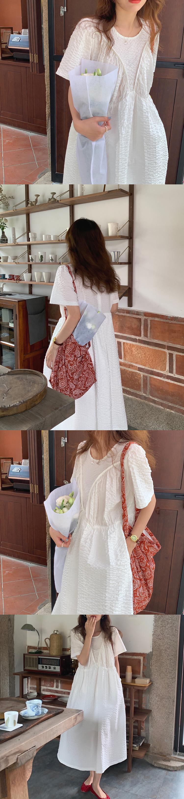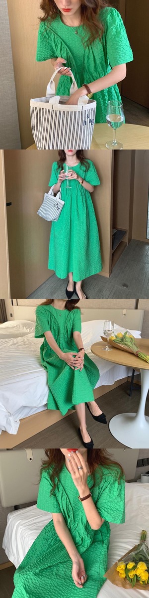 プリーツAラインロングスカート サマールーズ薄手ラウンドネックドレス 夏物 Oネック ステッチ ビッグFスモールZ韓国70177130458
