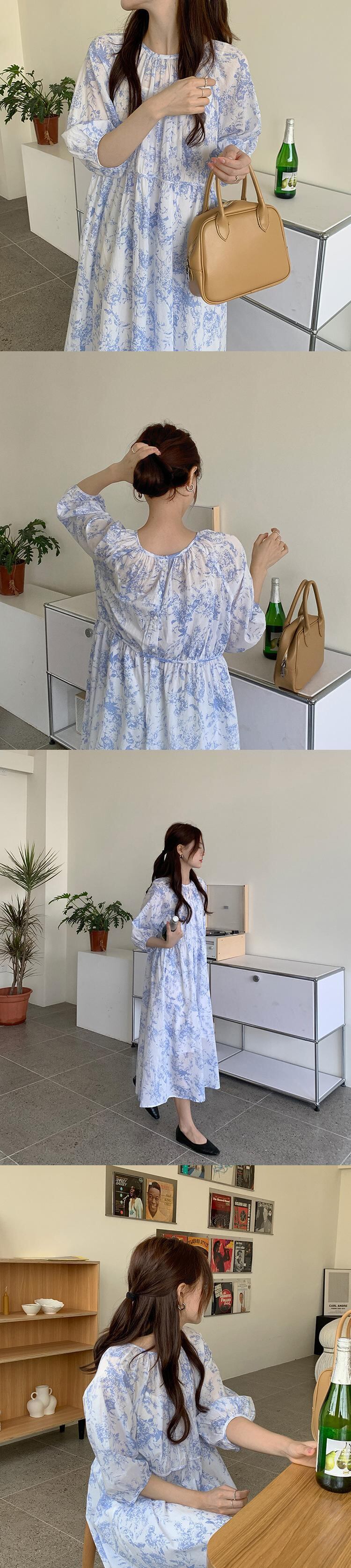 ルーズドレス サマーラウンドネックプリーツスリーブプリントスカート 夏物 Oネック ビッグFスモールZ韓国96625323380