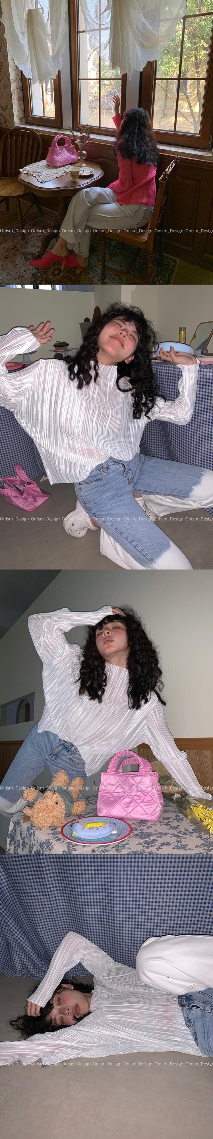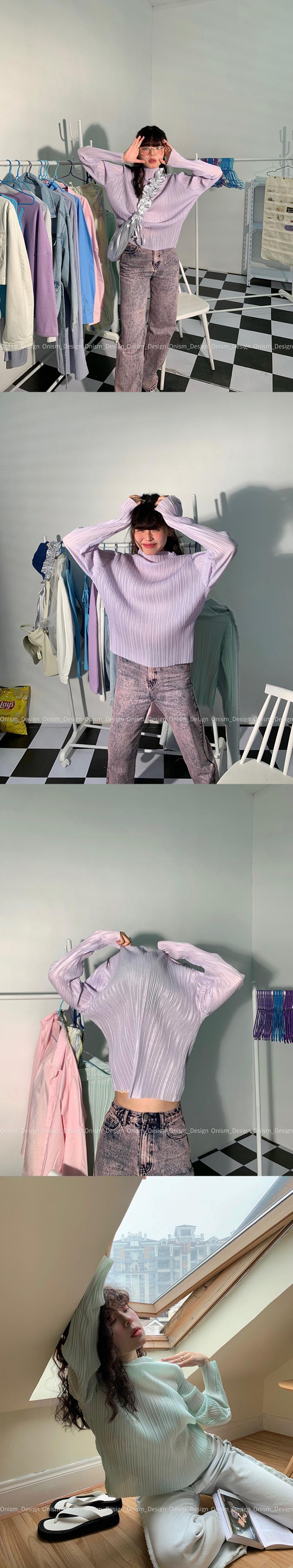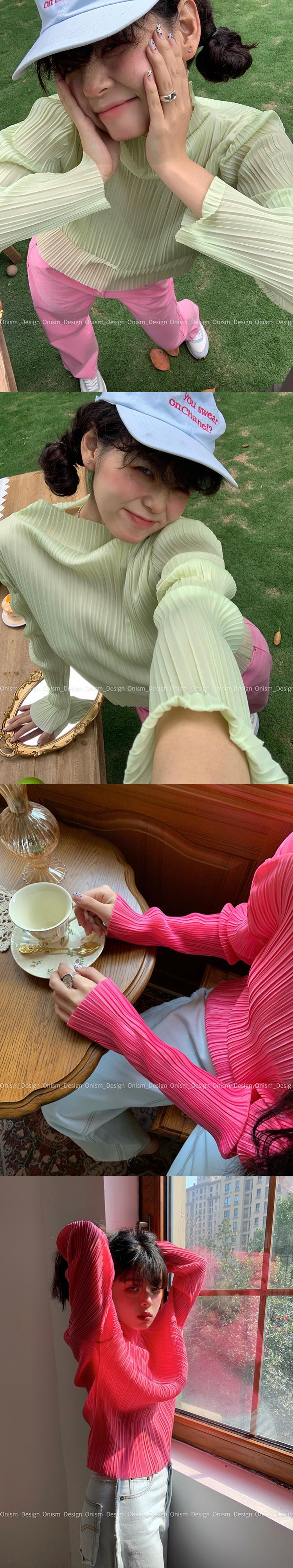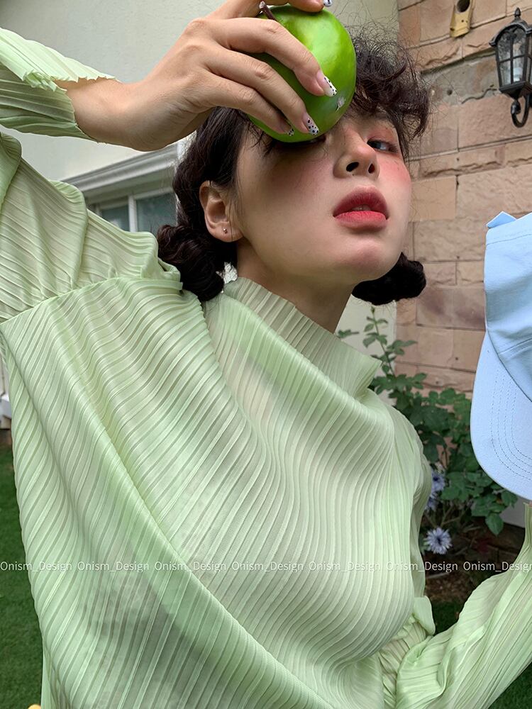 プリーツトップス 薄手プルオーバー ルーズTシャツ ロング ビッグFスモールZ韓国299123911