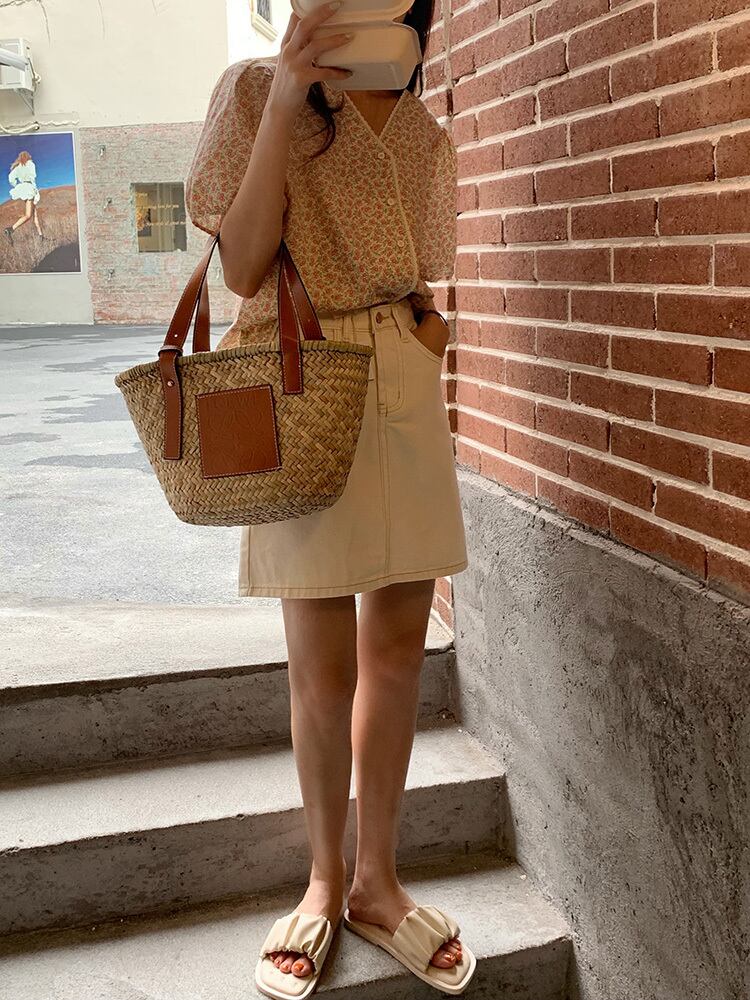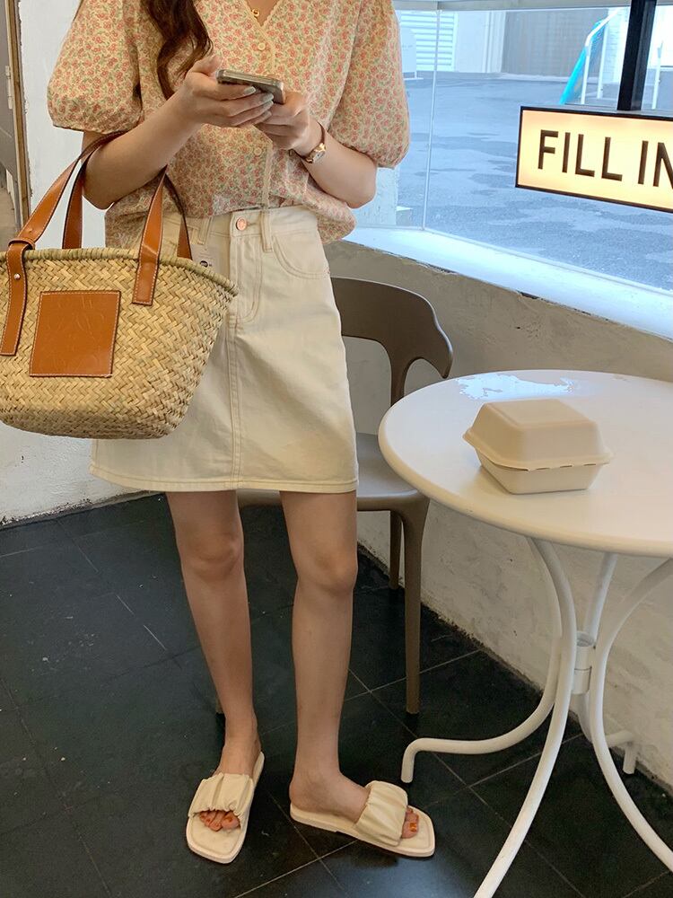 ショートスカート サマーカジュアルハイウェストウェストAライン薄手ホワイト 夏物 ビッグFスモールZ韓国24306551634