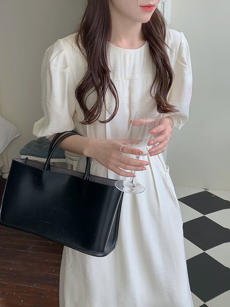 ドレス サマースタイル薄手ラウンドネックウェストスリーブポケットホワイトスカート 夏物 Oネック ビッグFスモールZ韓国19682141263