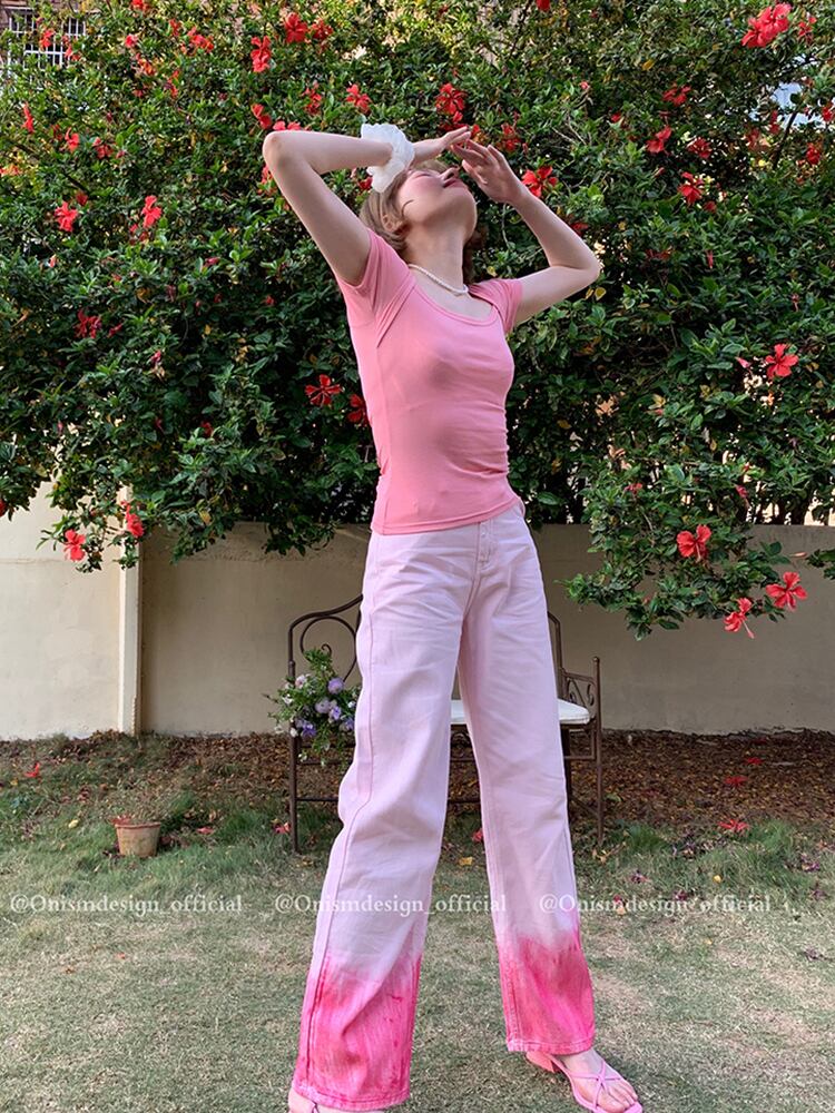 カラージーンズ サマーハイウェストパンツ スリムカジュアル 夏物 ビッグFスモールZ韓国20307995419