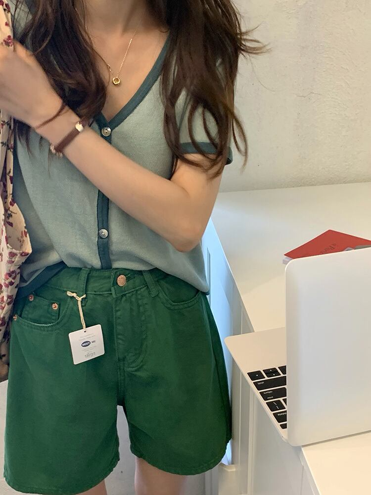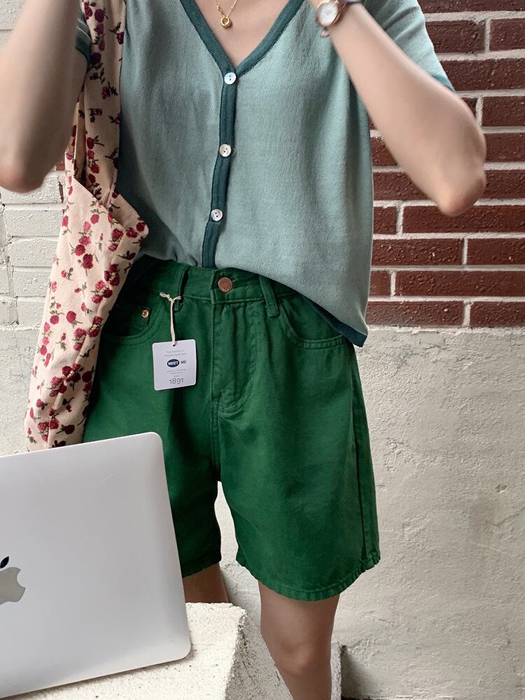 ソリッド カラーショーツ レディースサマーカジュアルハイウェストウェストスリムルーズパンツ 夏物 ブルマー ソリッドカラー ビッグFスモールZ韓国90237944904