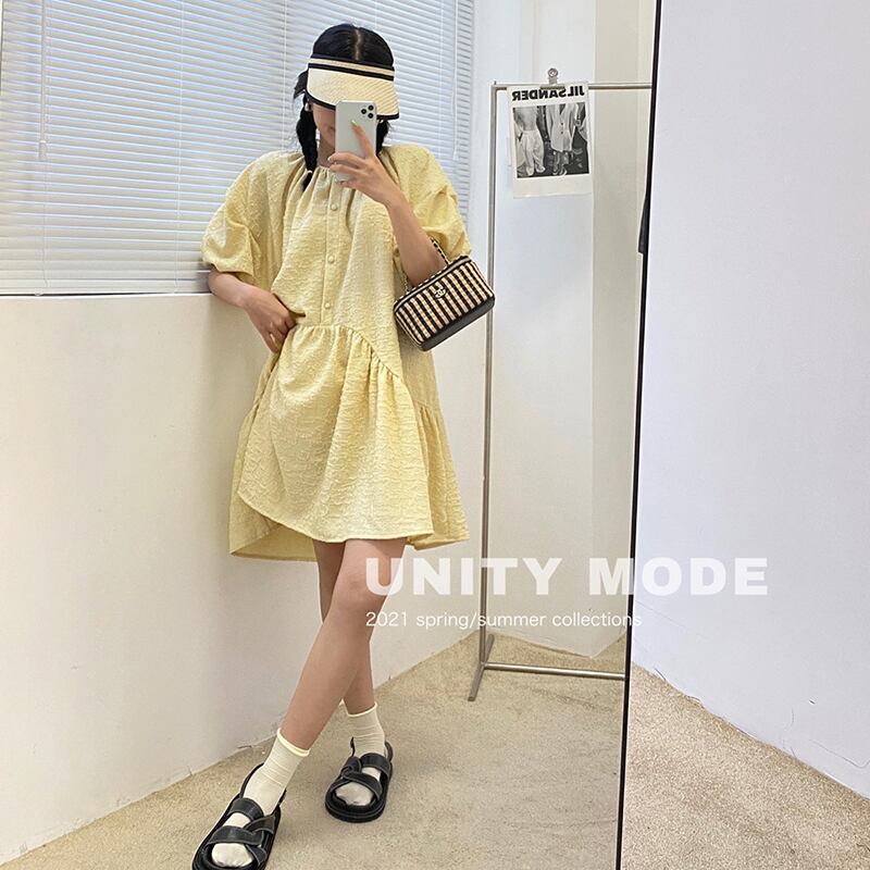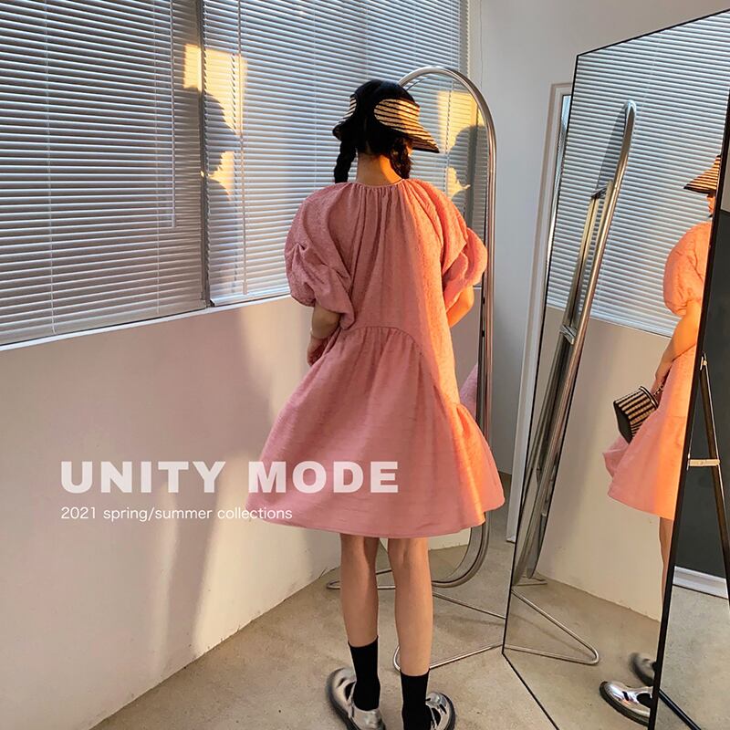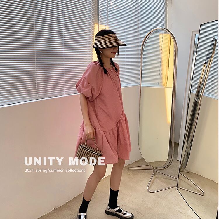 ルーズAラインスカート ドレス サマースリーブ 夏物 ビッグFスモールZ韓国38083000737