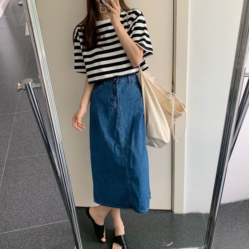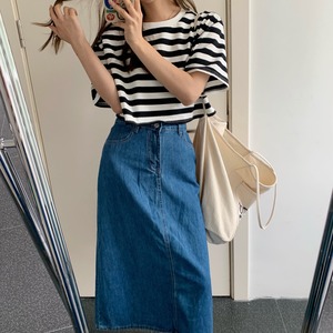 ベーシックストライプルーズウェストサマー半袖スリーブTシャツ トップス レディース ショート ハーフスリーブ 夏物 ビッグFスモールZ韓国30518689778