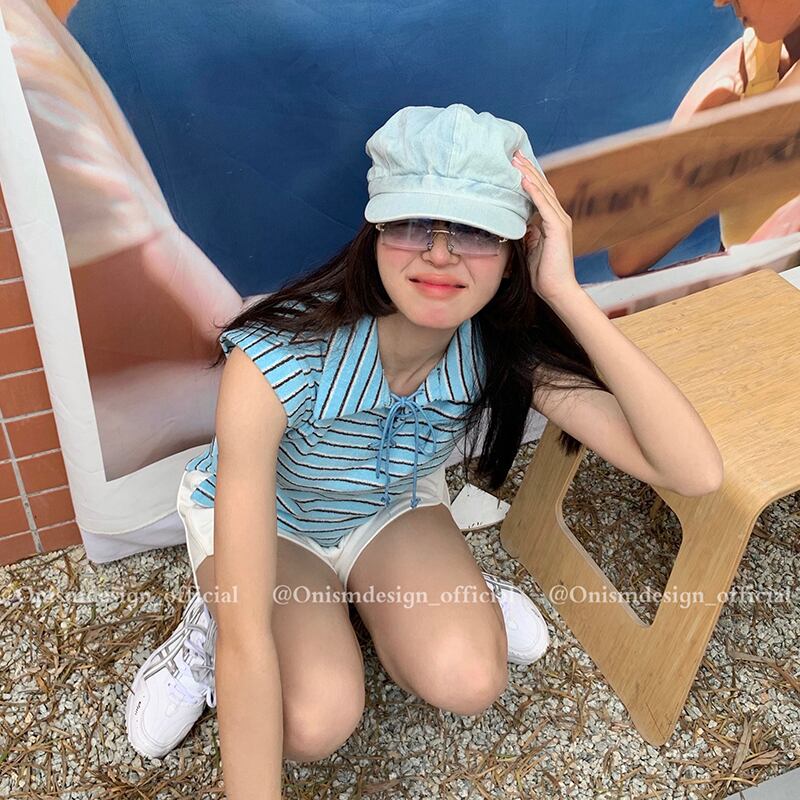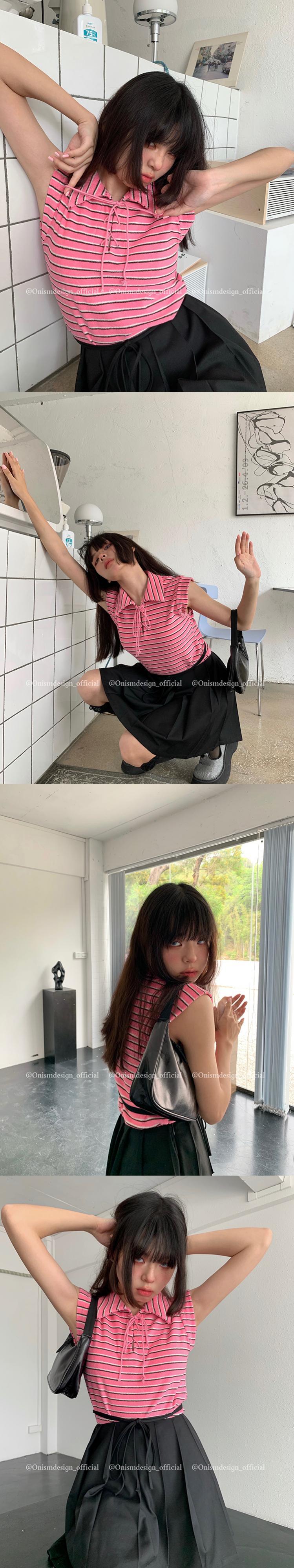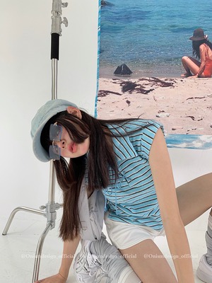 ノースリーブストライプトップス サマー薄手Tシャツ カラー 夏物 ビッグFスモールZ韓国96581705591