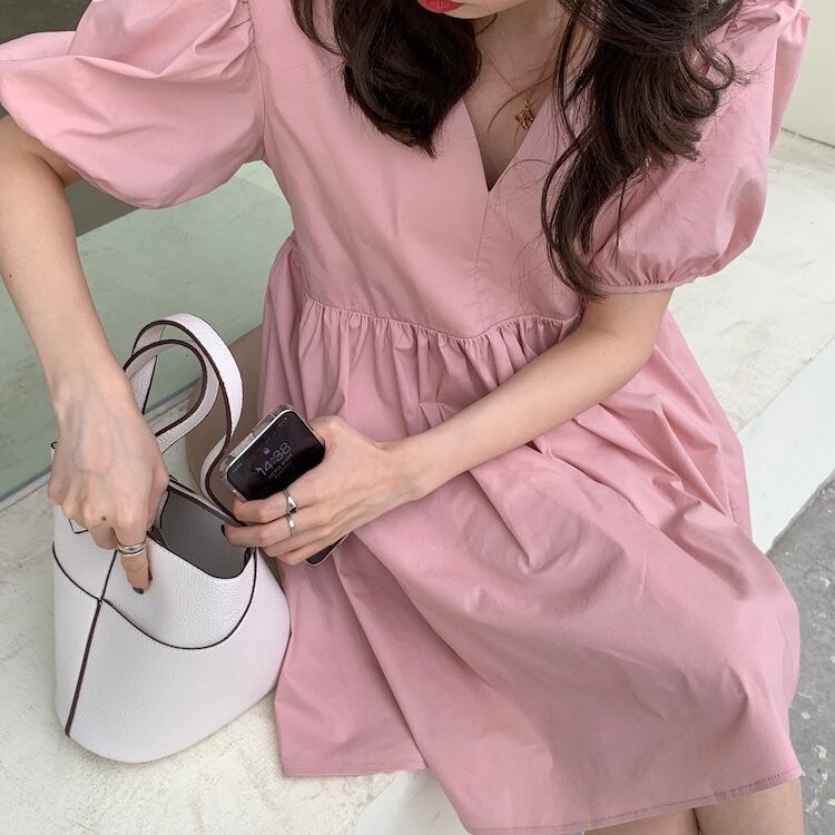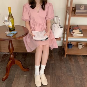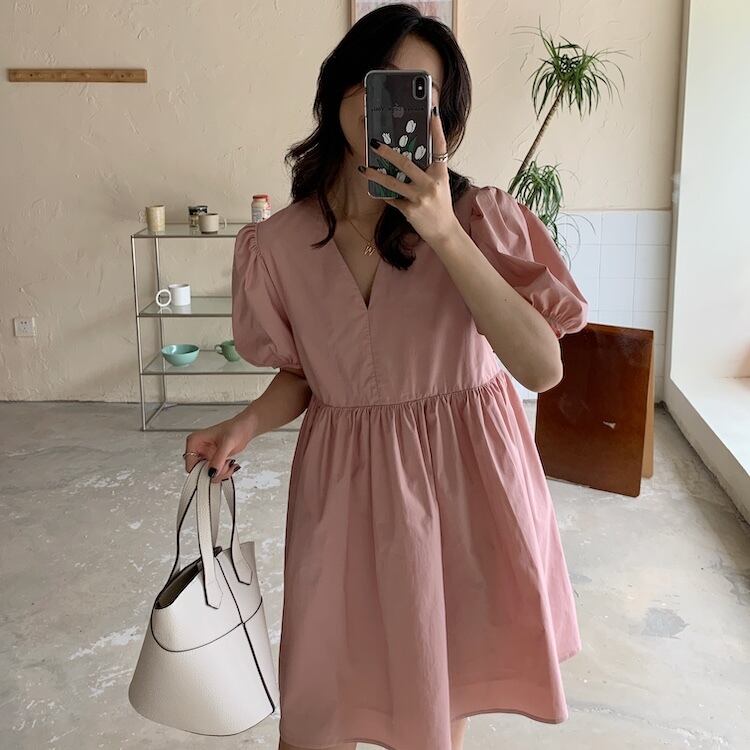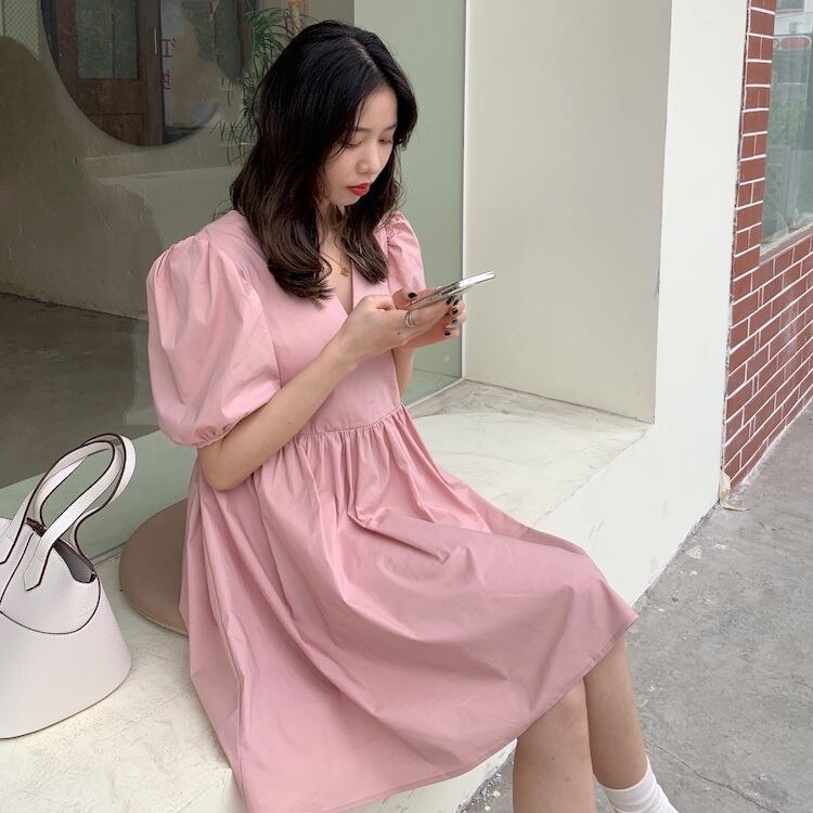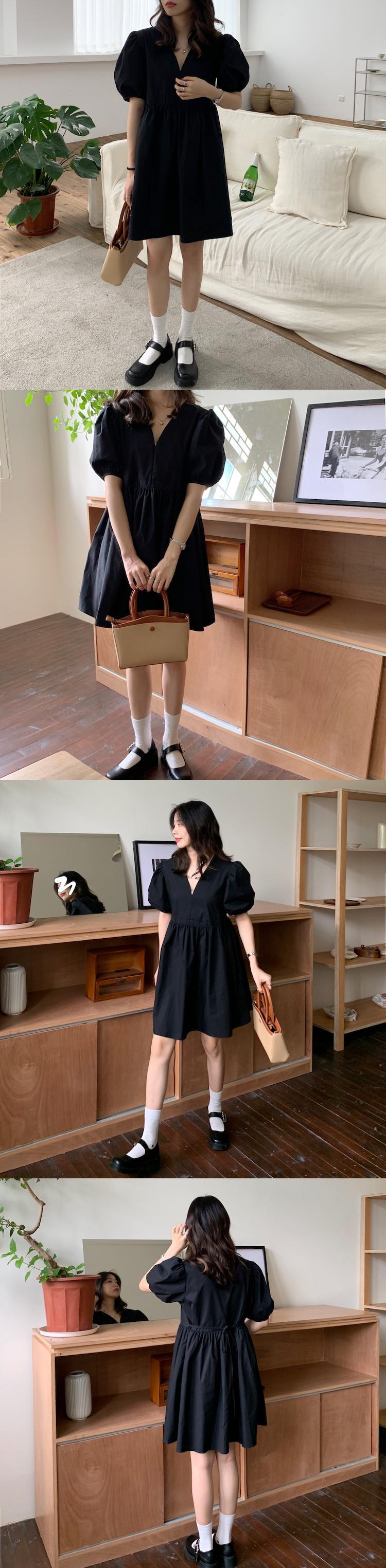 スリーブドレス レディースサマールーズブラックショートVネック 夏物 ビッグFスモールZ韓国51237520038