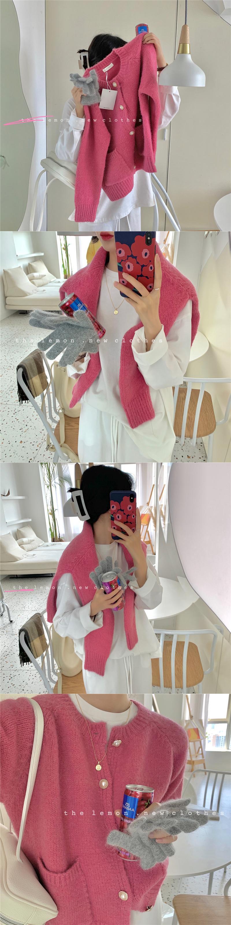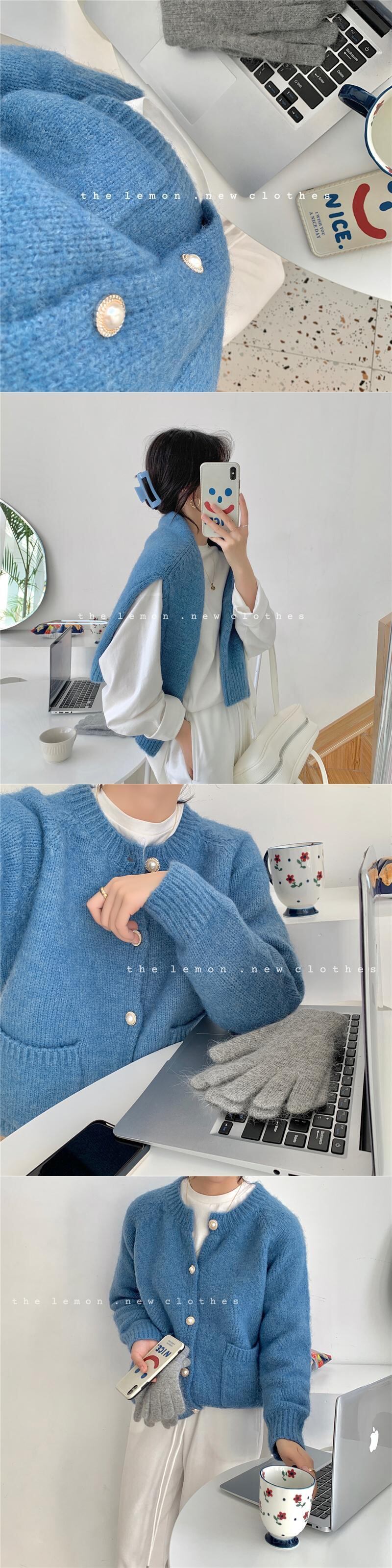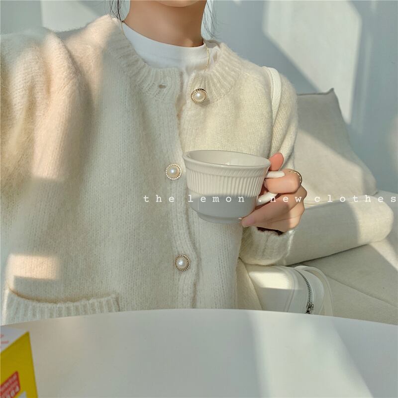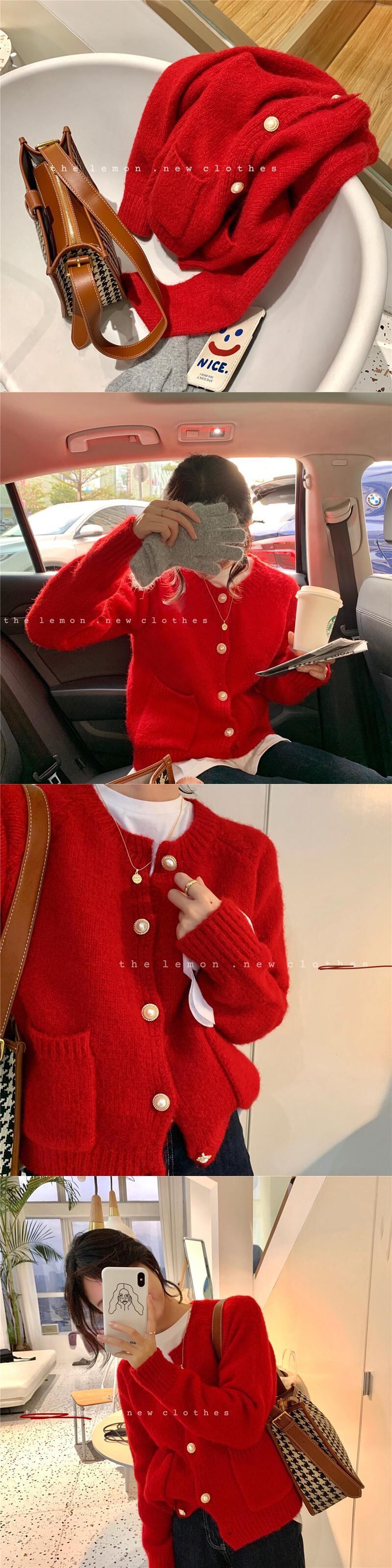 スタンダードポケットニットカーディガンボタンラウンドネックセーター ジャケット レディーススプリング レトロ 春物 Oネック ビッグFスモールZ韓国65713440040