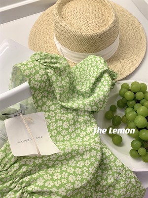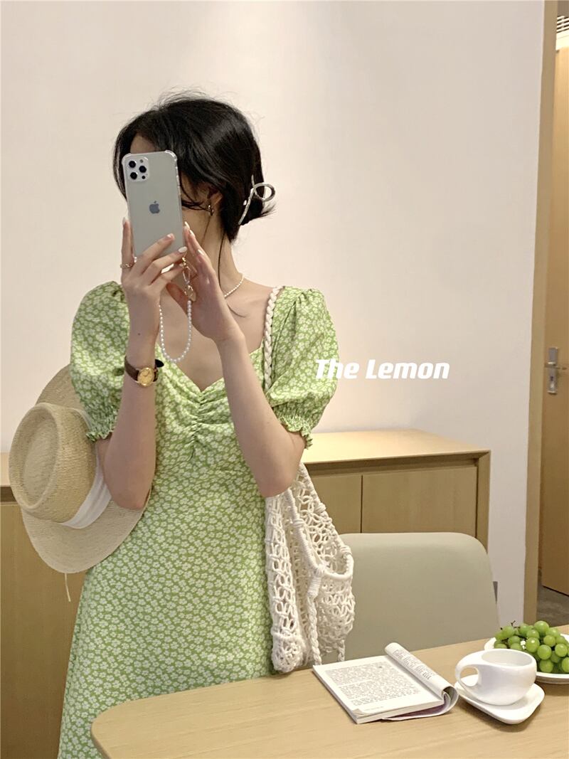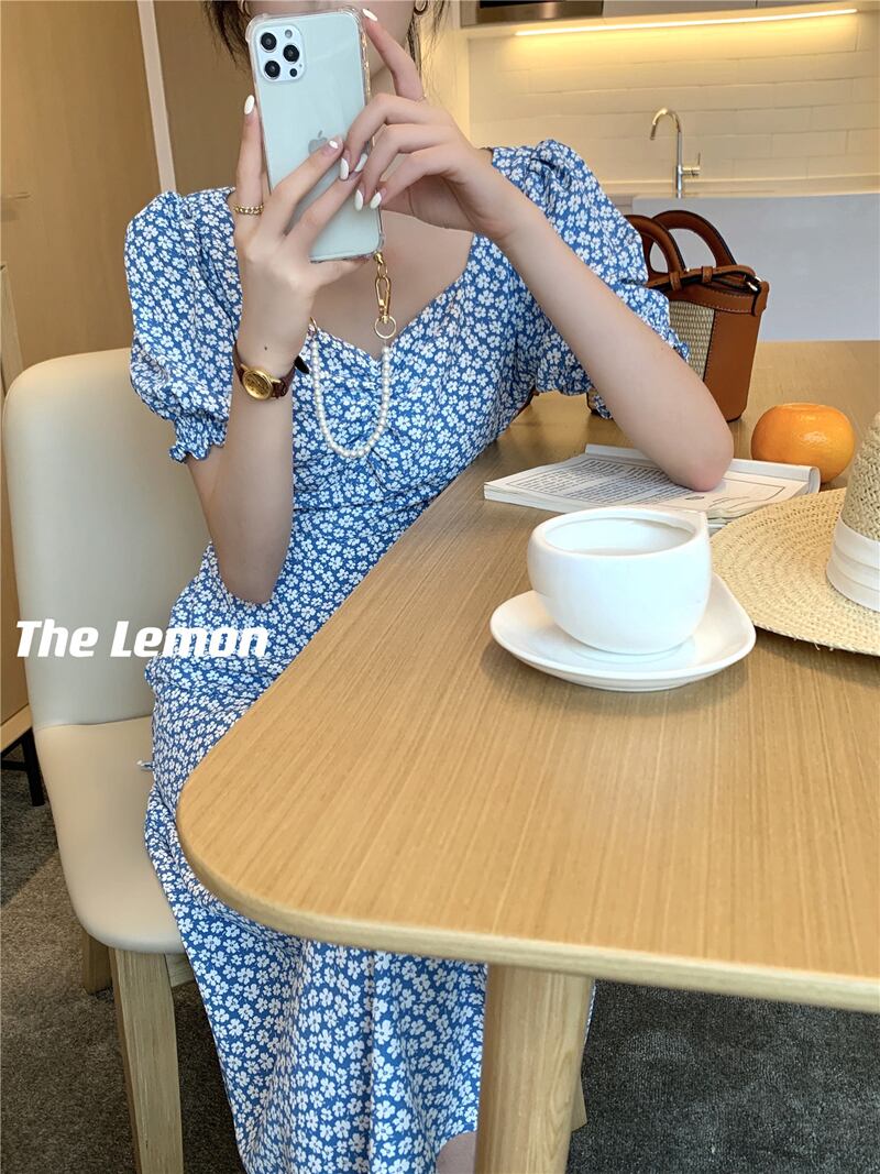 フローラルスカート Vネックロングスリットサマードレス レディース レース エレガント 夏物 花柄 レースアップ ビッグFスモールZ韓国72545044510