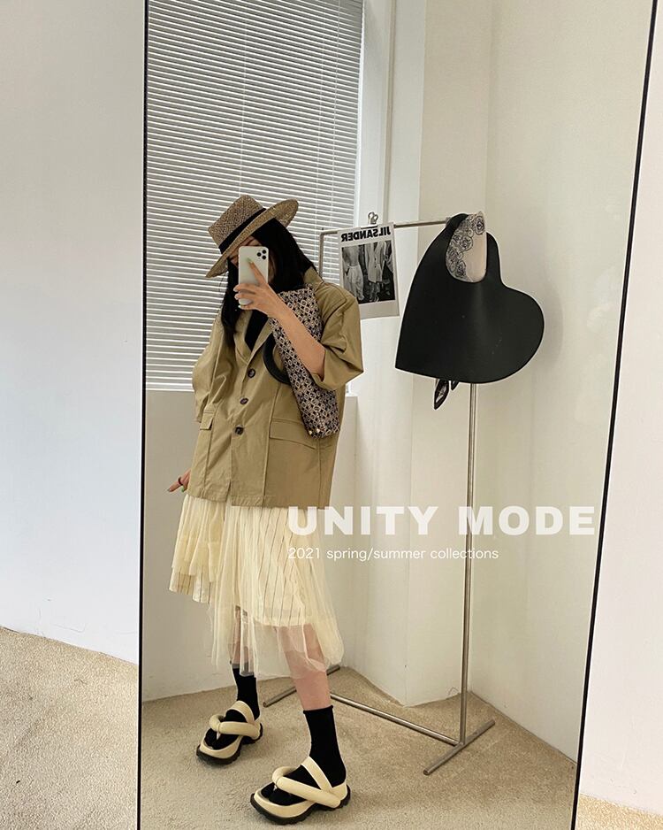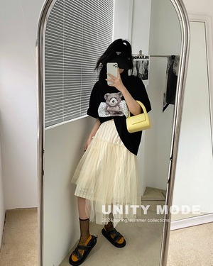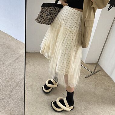メッシュストライプスカート サマースタイルハイウェストウェストAライン 夏物 ステッチ ビッグFスモールZ韓国89783594287