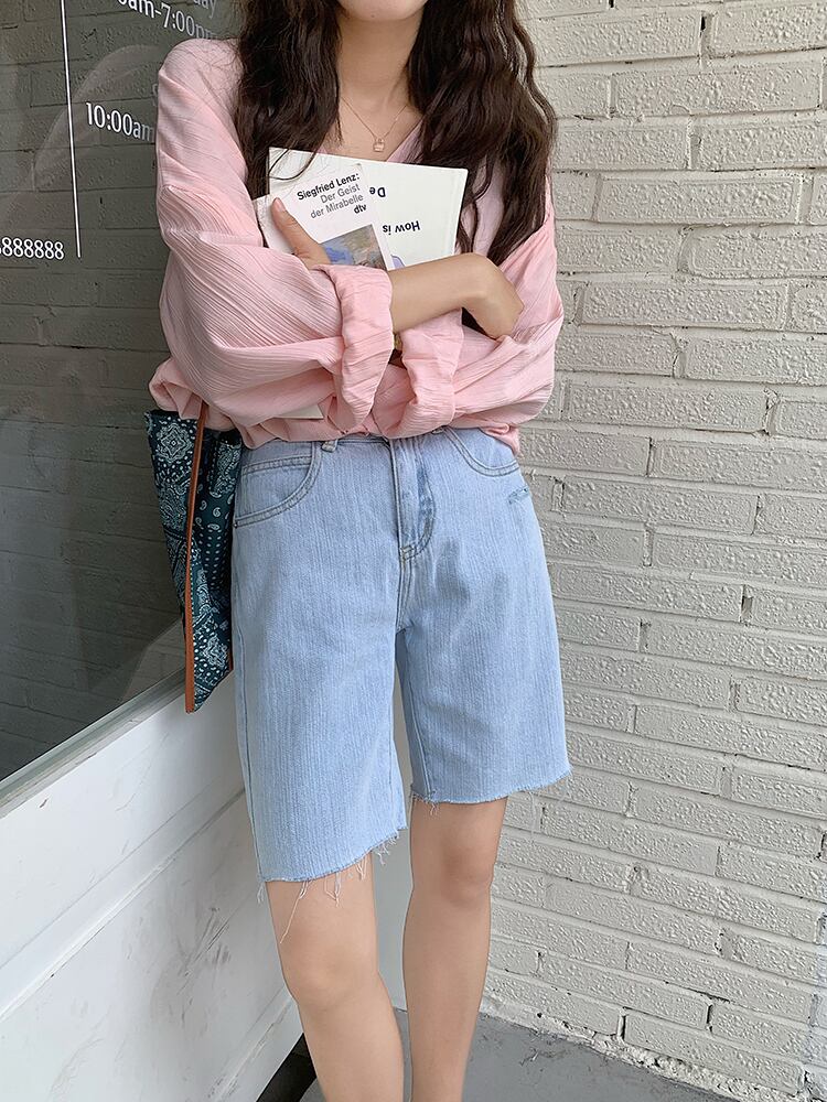 ジーンズ レディースサマースタイル薄手スリムショーツ レッド 夏物 ブルマー ビッグFスモールZ韓国60952206707