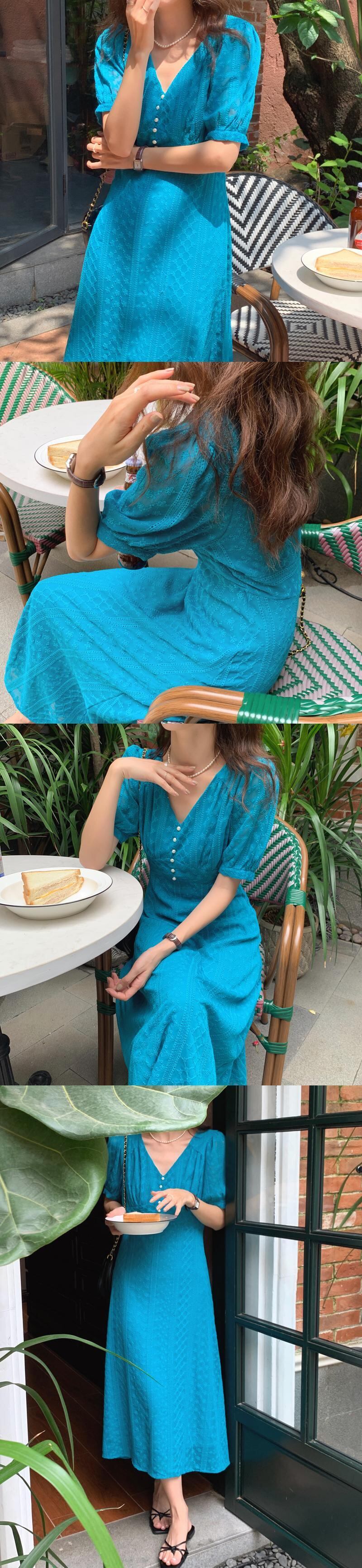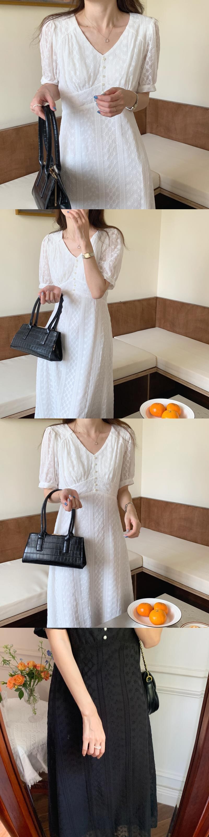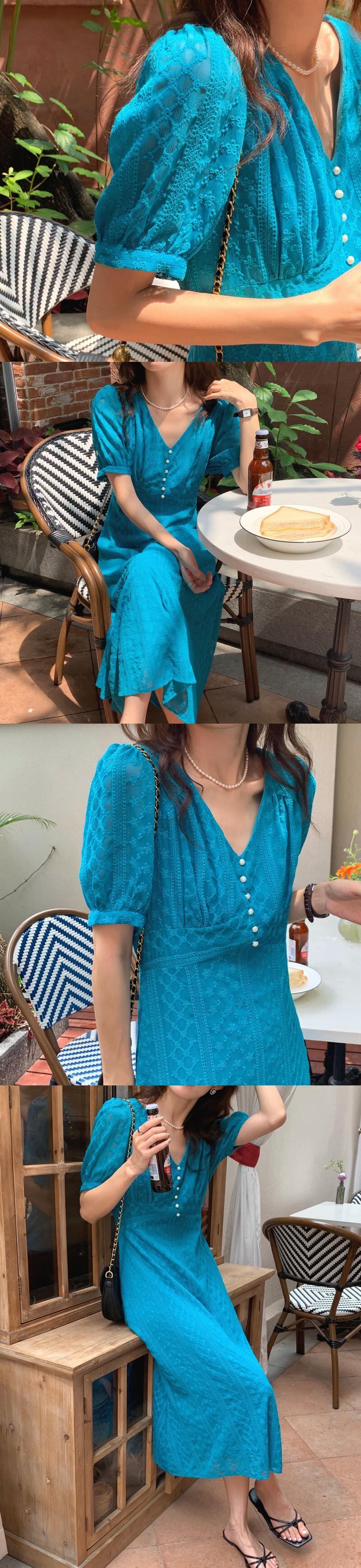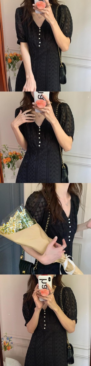 サマーレースドレス スタンダード薄手Vネック半袖スリーブスリムロングスカート レディース ショート レトロ ハーフスリーブ 夏物 ビッグFスモールZ韓国19429552679
