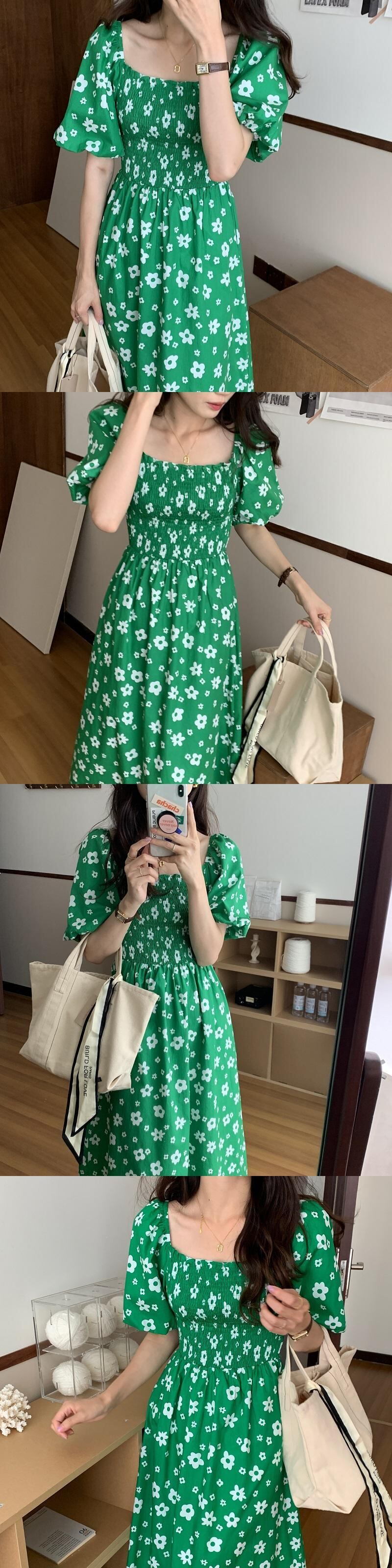 スリーブドレス サマースタイルカラープリーツスリムウェストロングスカート 夏物 スクウェア ビッグFスモールZ韓国49942172426