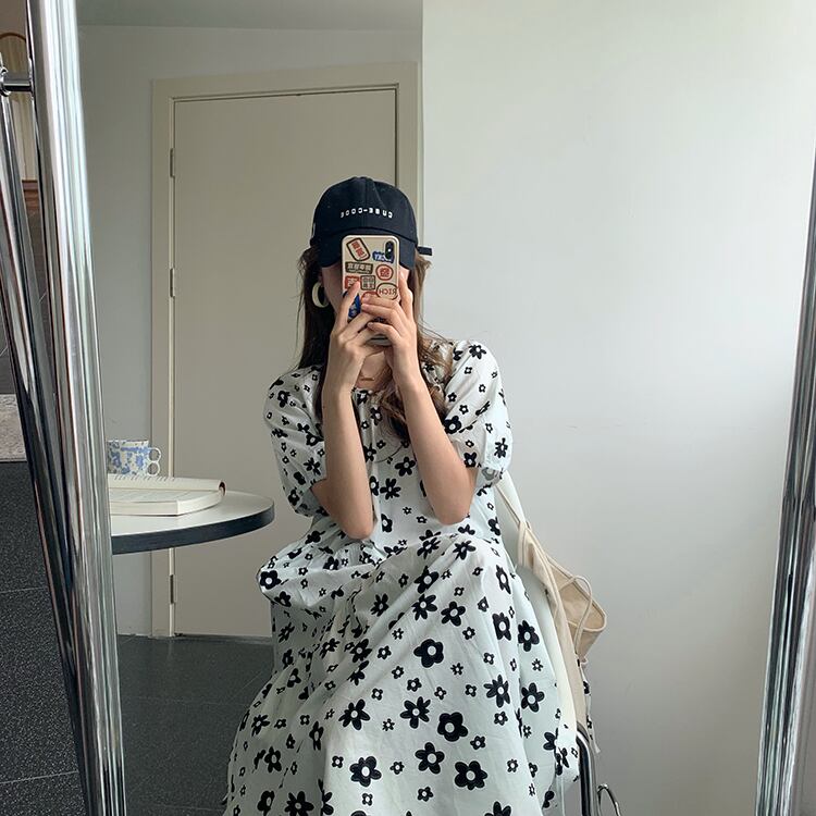 Aラインスカート ドレス サマースタイルルーズスリーブラウンドネックホルターフローラル 夏物 花柄 Oネック ステッチ ビッグFスモールZ韓国74603876560