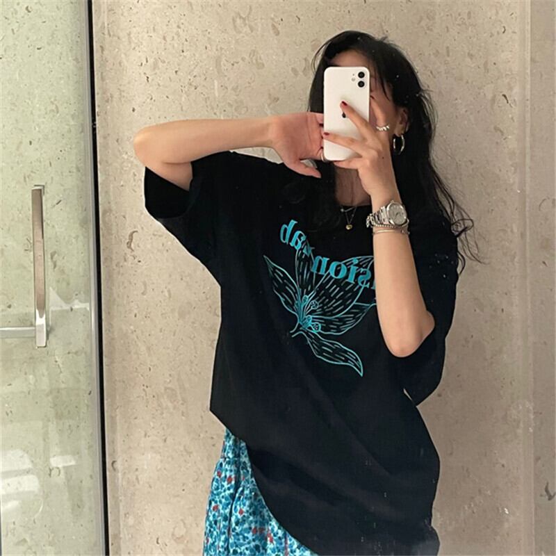 Flowerデザイン Tシャツ シャツ サマーラウンドネックルーズスリーブカジュアル 夏物 Oネック フラワーデザイン ビッグFスモールZ韓国55178289195
