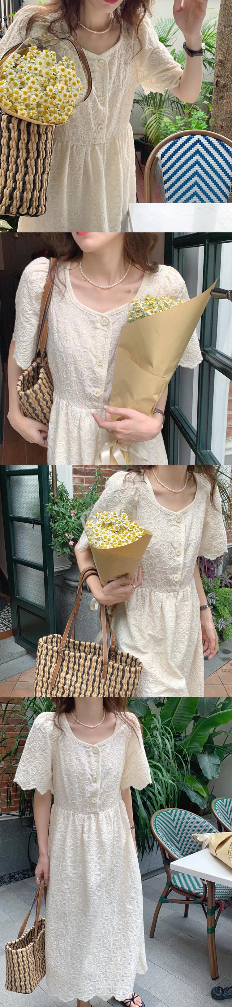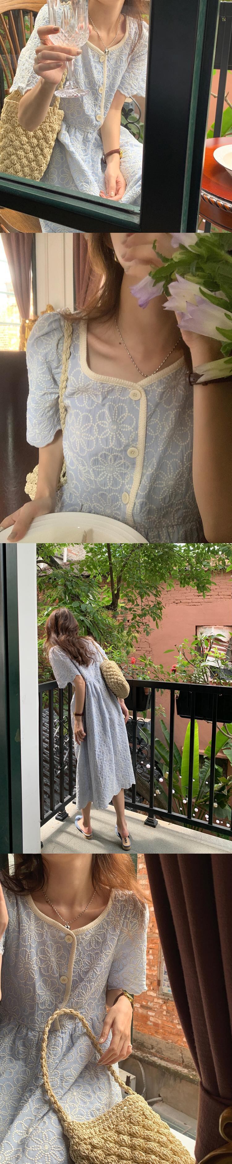 スリーブドレス サマースタイルウェスト薄手Aラインロングスカート レッド 刺繍 夏物 スクウェア ビッグFスモールZ韓国9812341783