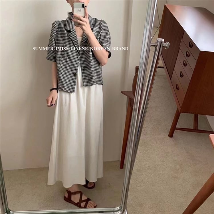 格子柄ブレザー サマーシングルブレスト薄手半袖スリーブトップス ショート ハーフスリーブ 夏物 ビッグFスモールZ韓国80364245957