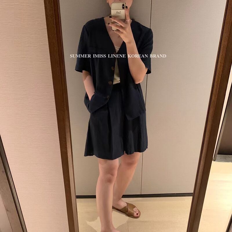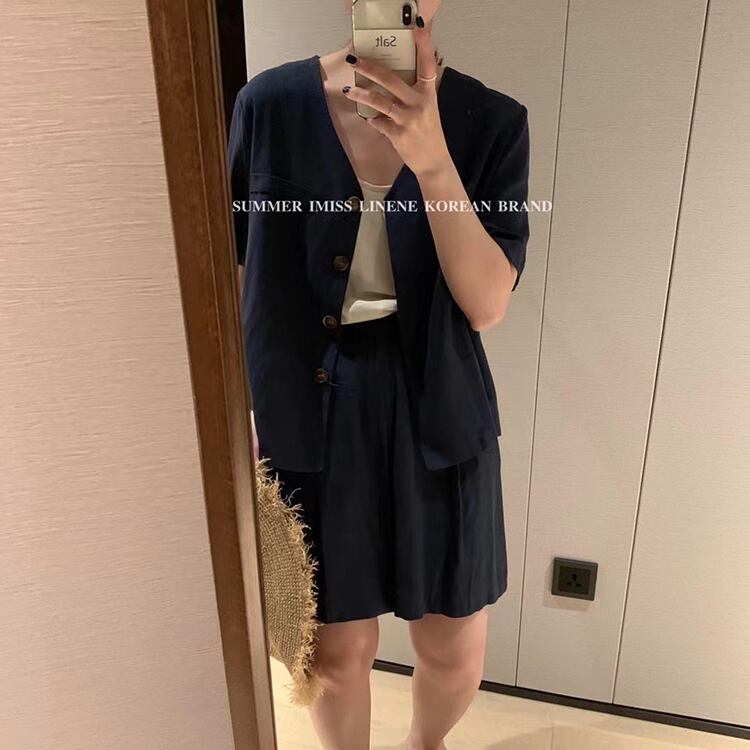 Vネックソリッド カラーポケットシャツ サマースタイルショーツ 夏物 ブルマー ソリッドカラー ビッグFスモールZ韓国93067376024