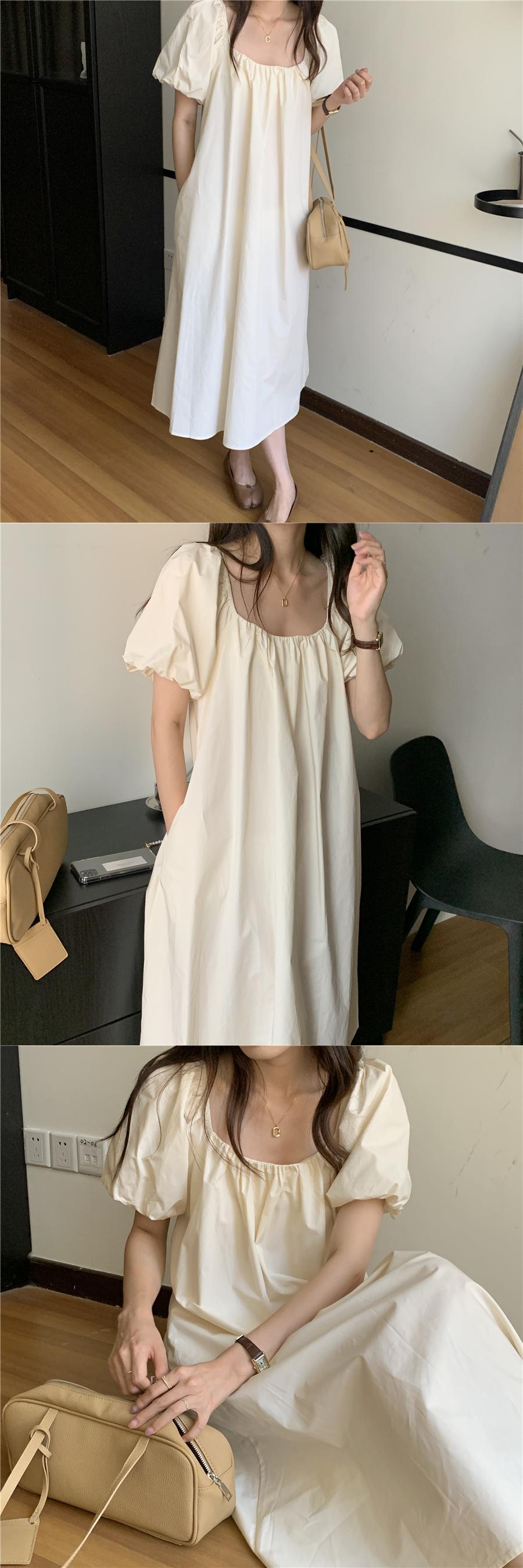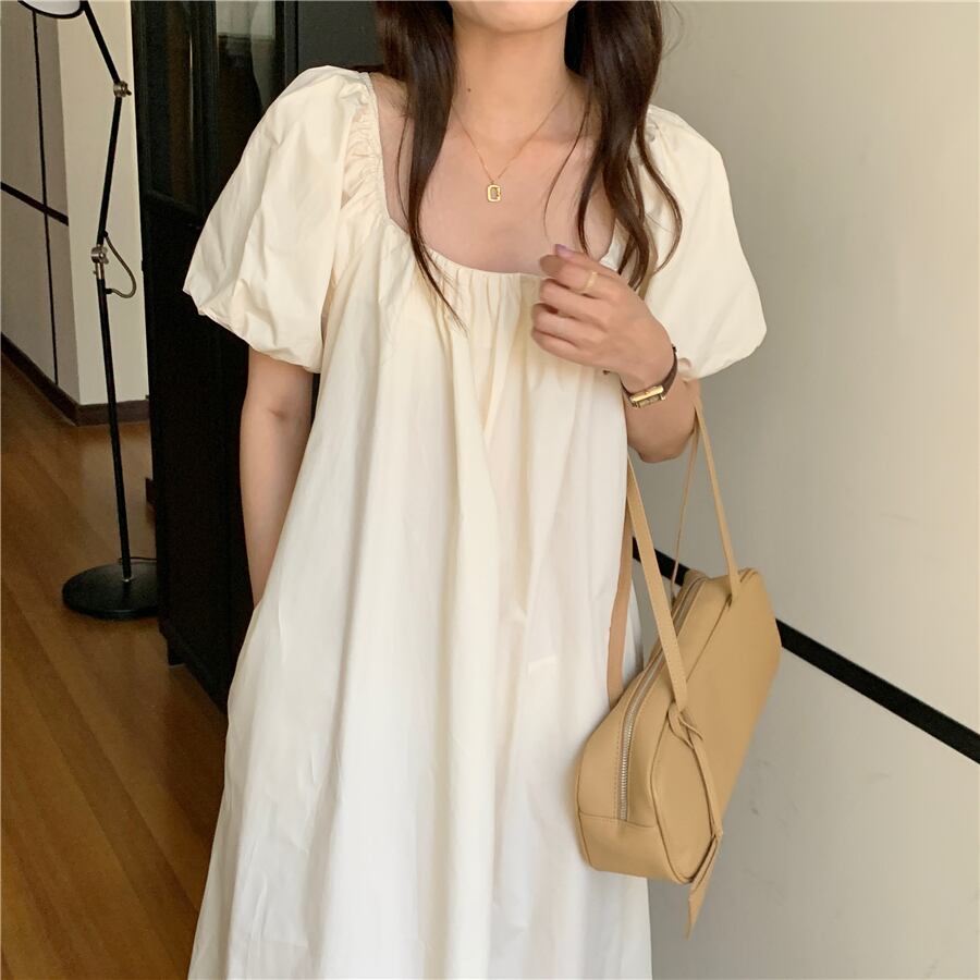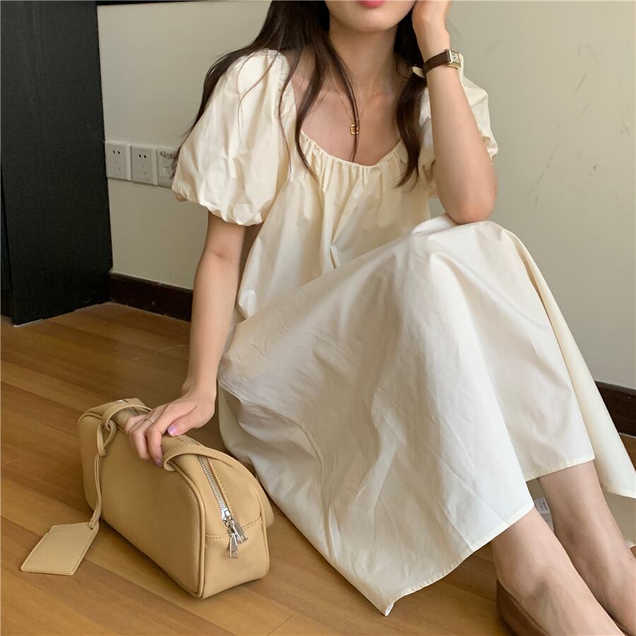 スリーブプリーツラウンドネックドレス サマーカラーレース薄手スカート 夏物 Oネック ピュア ビッグFスモールZ韓国30828647872