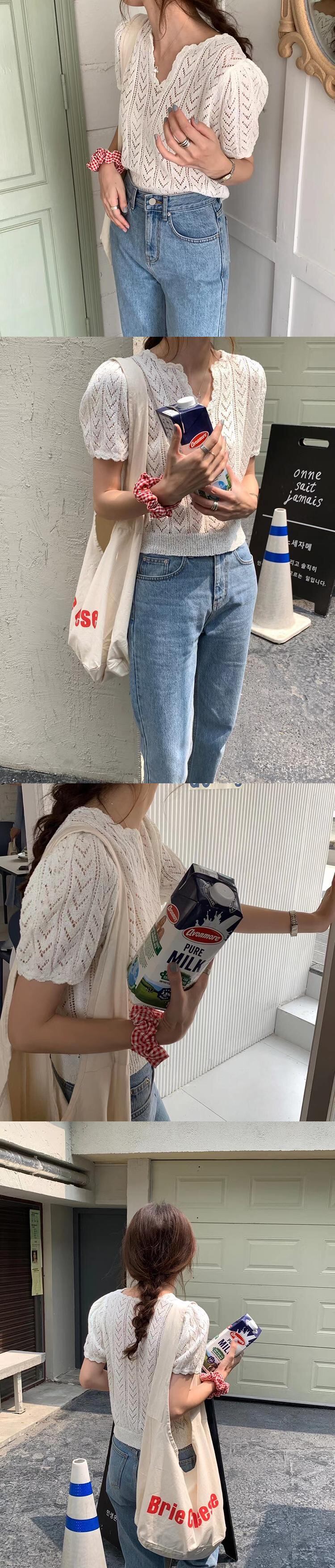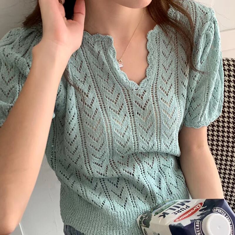ニットショートトップス レディースサマールーズ薄手Vネック半袖スリーブブラウス ハーフスリーブ 夏物 ビッグFスモールZ韓国38476661578