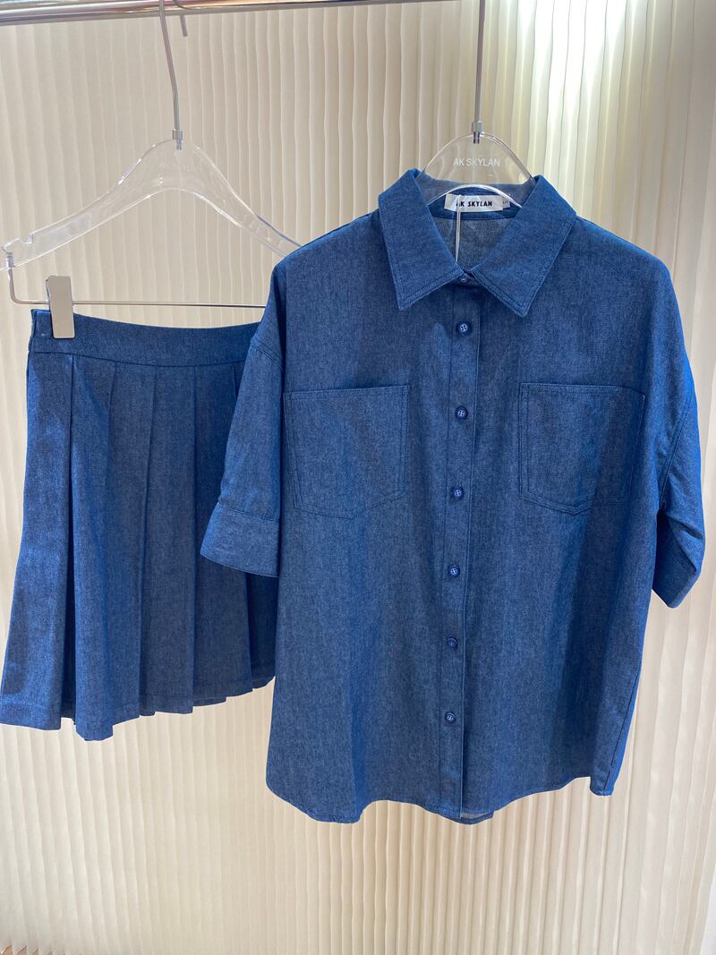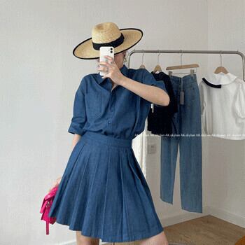 シャツ 薄手プリーツAライン スカート ビッグFスモールZ韓国22497316188