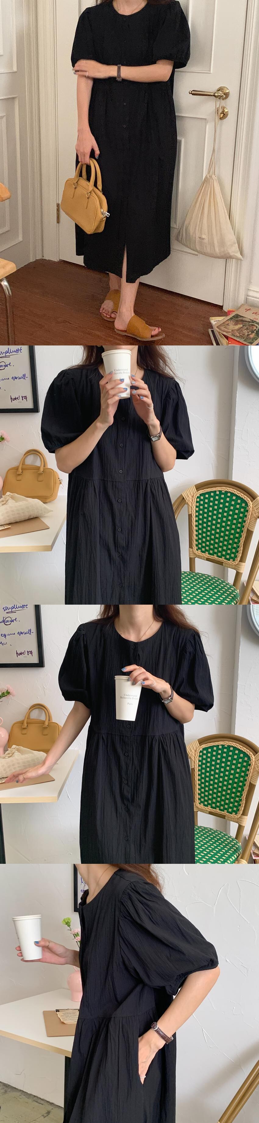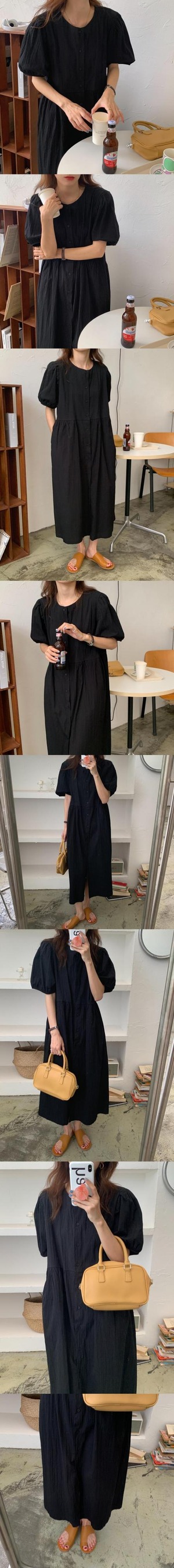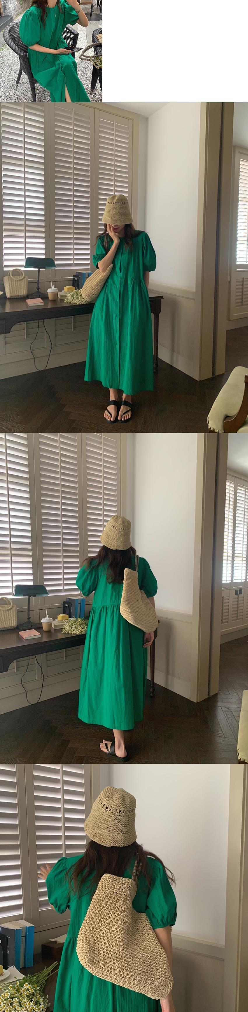 ラウンドネックスリーブドレス サマーカラーAラインウェスト薄手ロングスカート 夏物 Oネック ピュア ビッグFスモールZ韓国11923910905