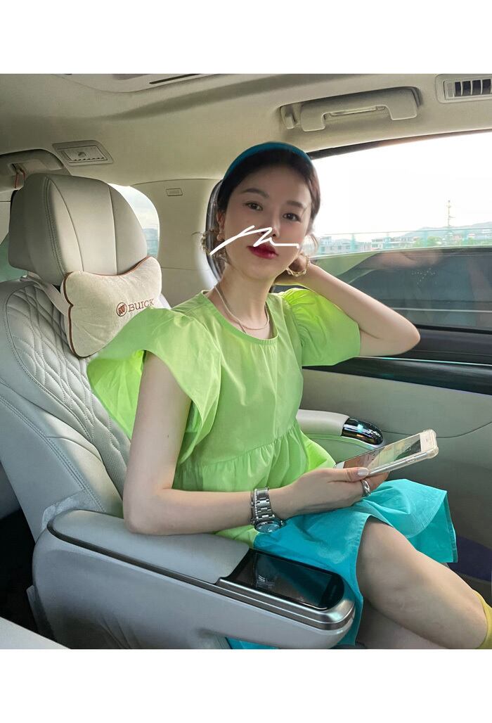 カラースリーブドレス サマーAライン薄手ショートスカート 夏物 ステッチ ビッグFスモールZ韓国60620728509