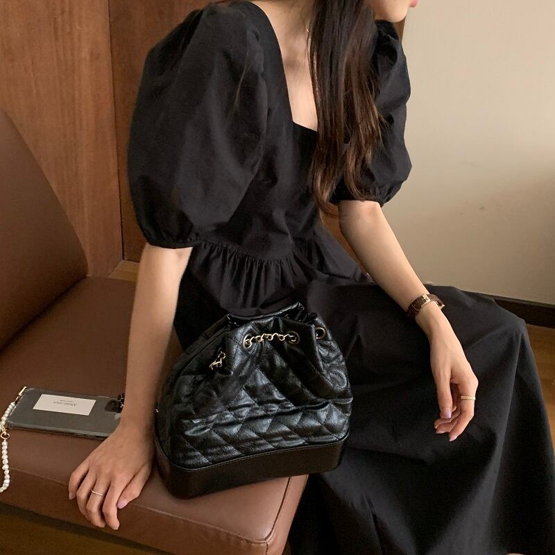プリーツカラーソリッド ドレス サマースタイルハイウェストウェスト薄手ロングスカート 夏物 ソリッドカラー スクウェア ビッグFスモールZ韓国9763211469