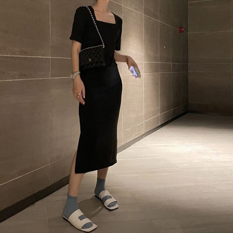 ストライプドレス サマースタイルウェストスカート 夏物 スクウェア ビッグFスモールZ韓国70726094050