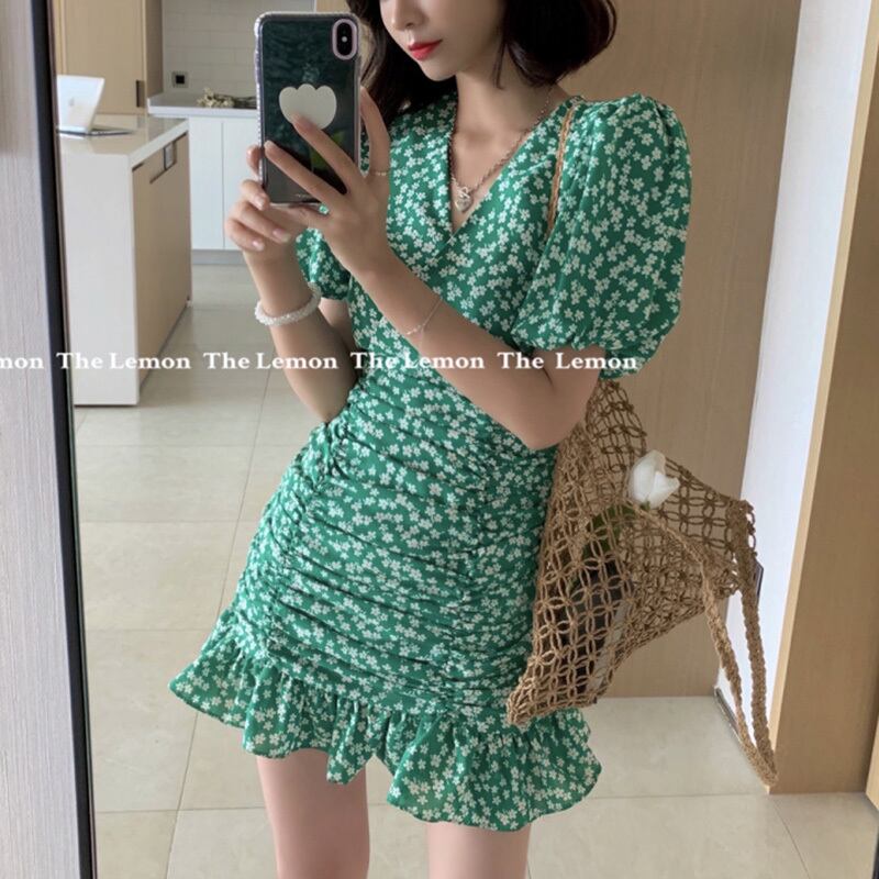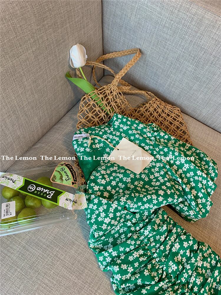 ドレス サマーVネックフローラル薄手スカート 大人ガーリー スウィート キュート カジュアル 夏物 花柄 かわいい ピュア ビッグFスモールZ韓国51127012767