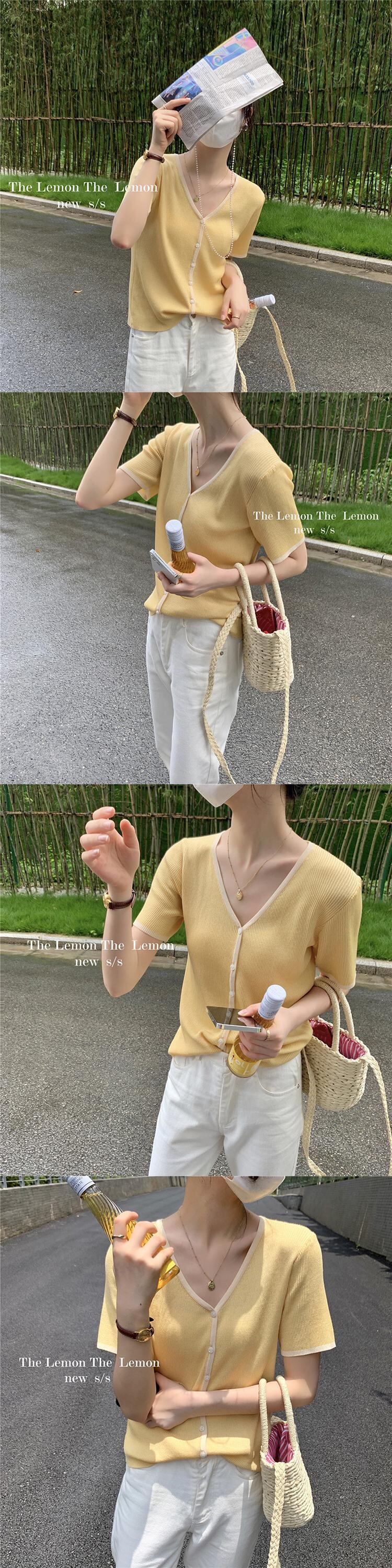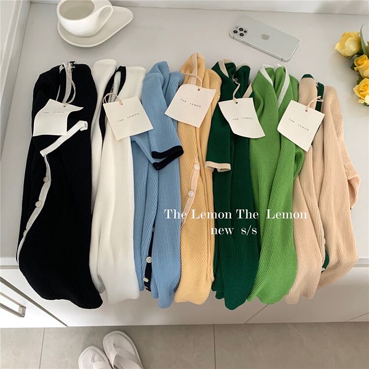 Vネックセーター レディースサマー薄手カーディガン レッド 夏物 ビッグFスモールZ韓国92872096678