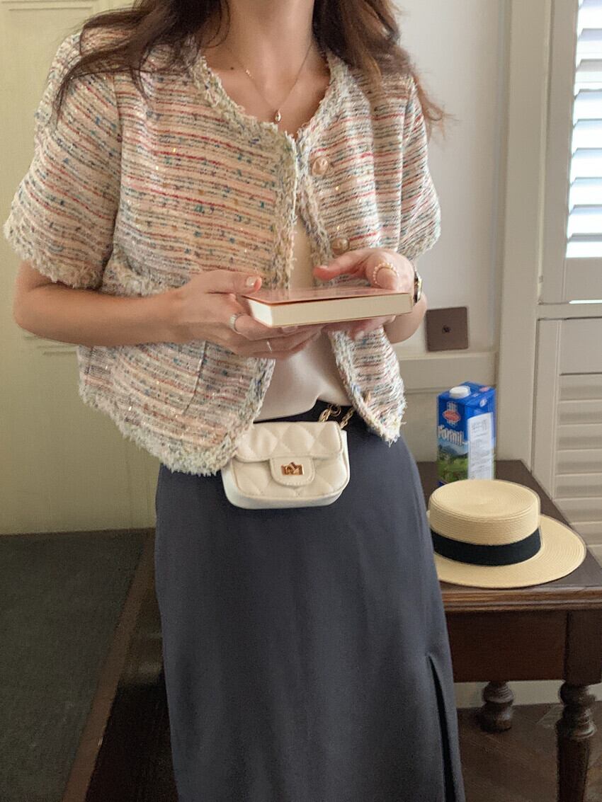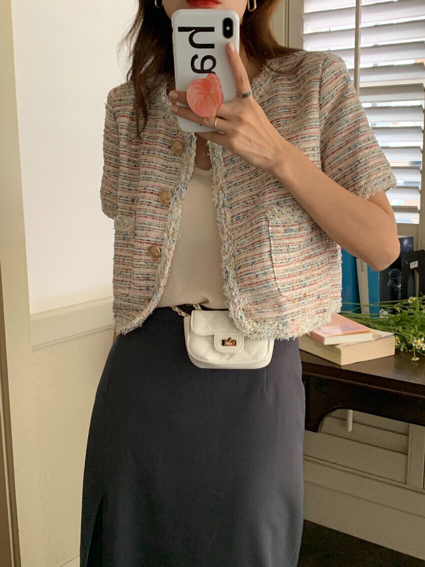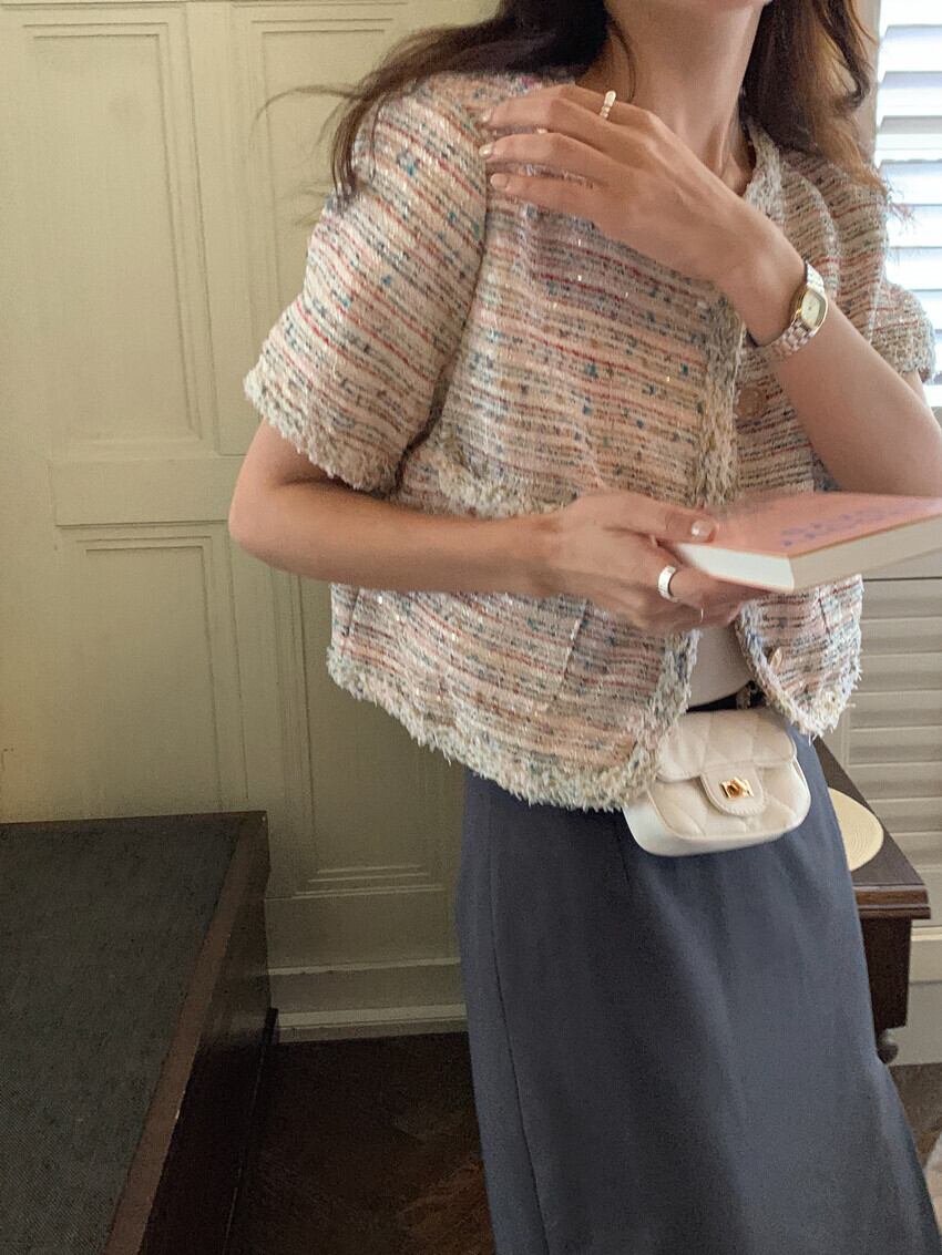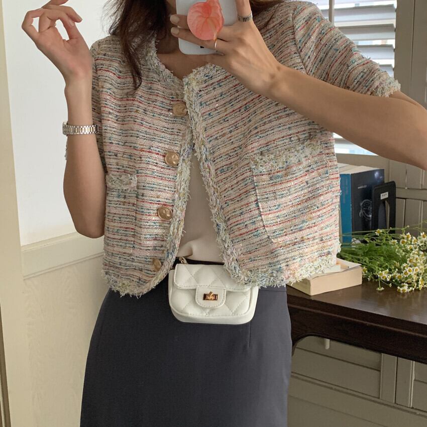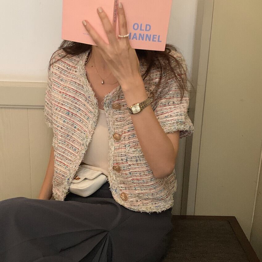 ジャケット サマーラウンドネックショートスタンダードコート ピンク レトロ 夏物 Oネック ビッグFスモールZ韓国97115962100