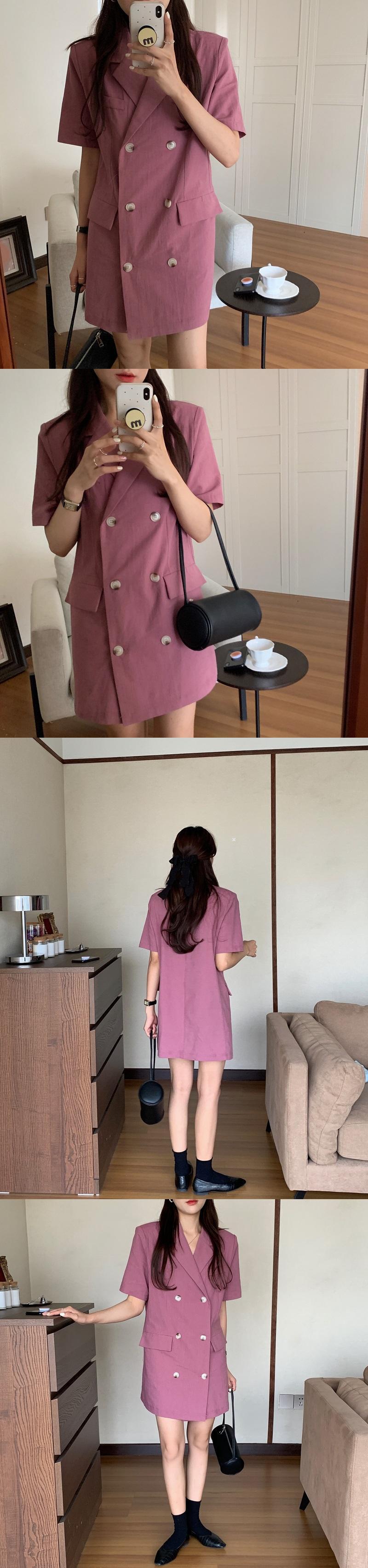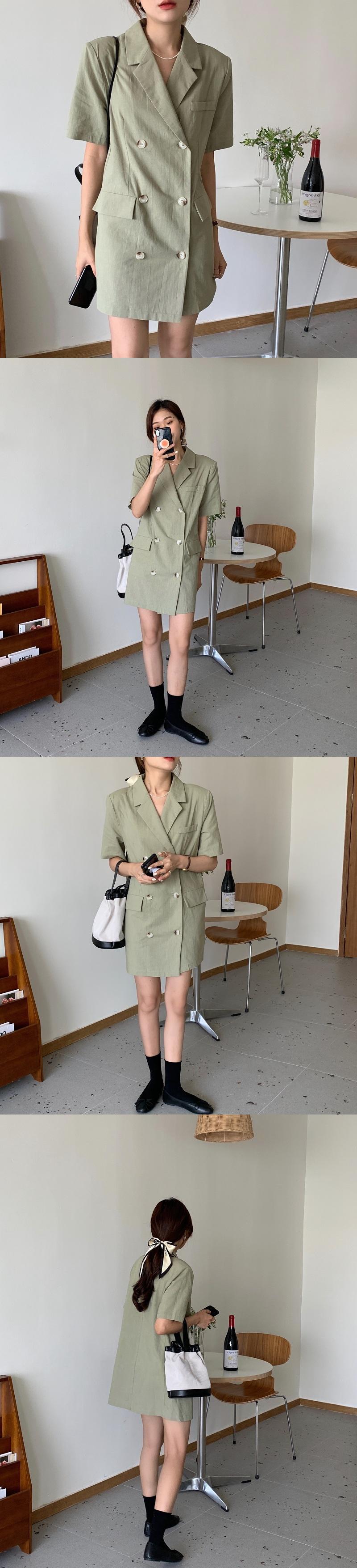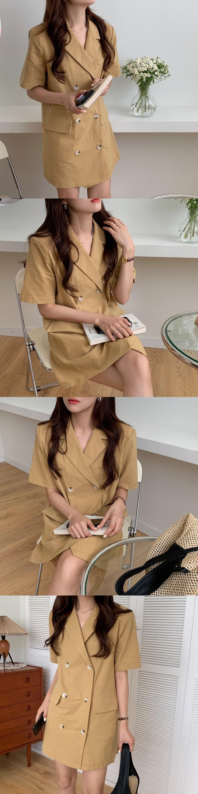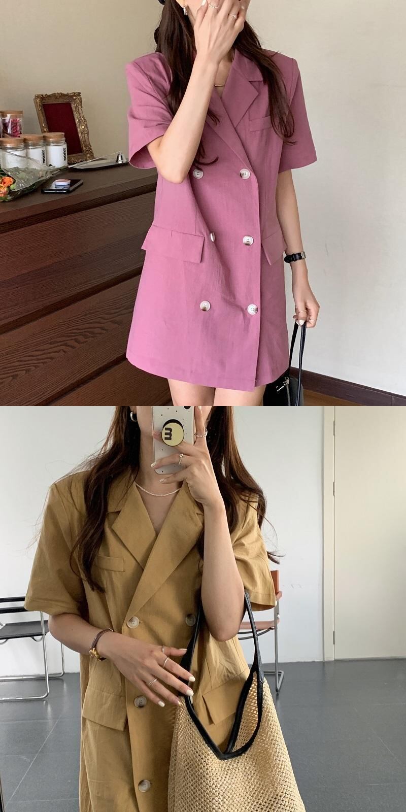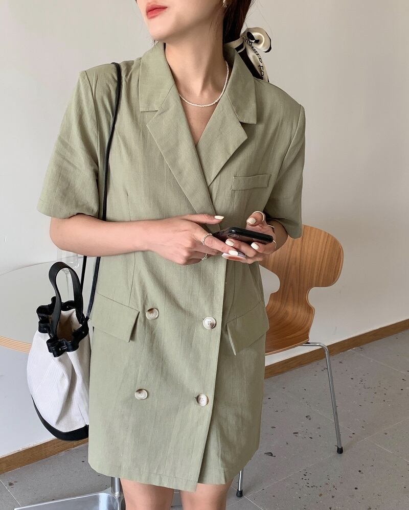 カラーダブルブレストドレス サマーポケットルーズカジュアル コットン 夏物 ビッグFスモールZ韓国68511025961