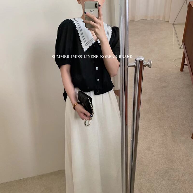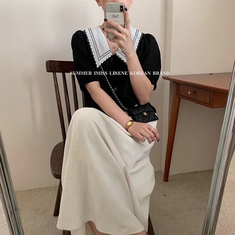 カラーレース薄手シャツ サマースタイル半袖スリーブトップス ショート ハーフスリーブ 夏物 ビッグFスモールZ韓国31801523560