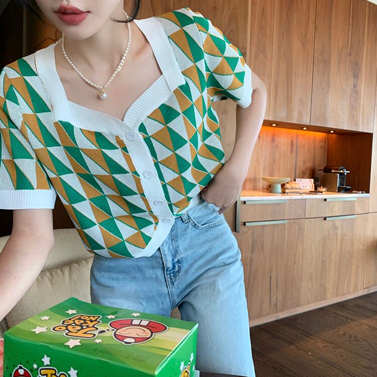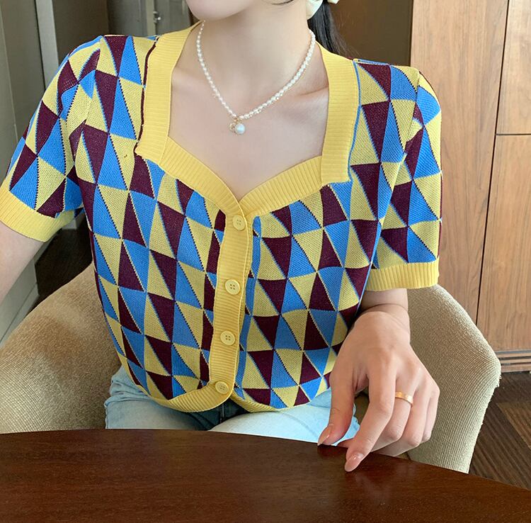 カジュアルカラーニットカーディガンサマー薄手ショートルーズトップス 夏物 スクウェア ビッグFスモールZ韓国28279161009