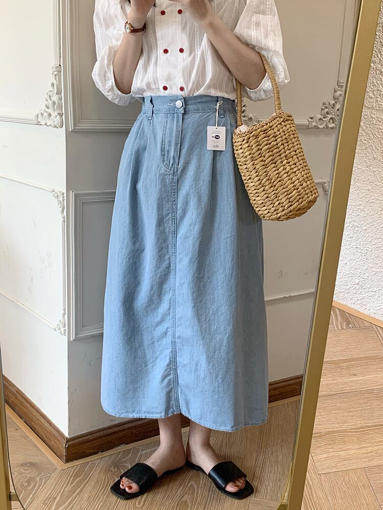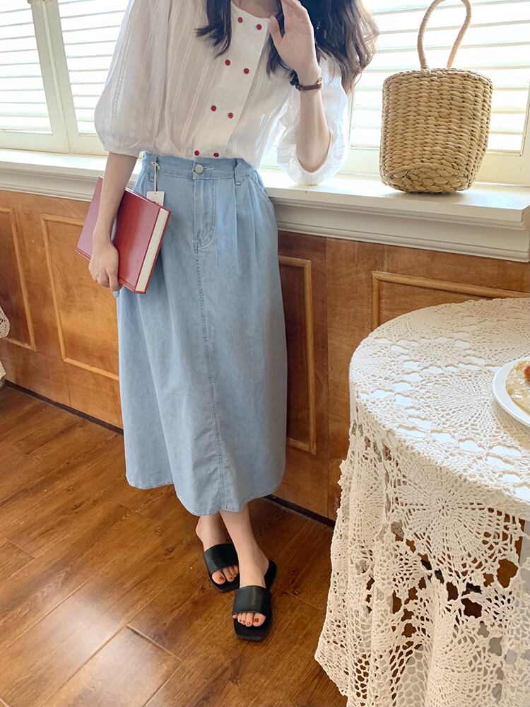 プリーツポケットスカート サマールーズ薄手ハイウェストウェスト レッド 夏物 ビッグFスモールZ韓国26856660153