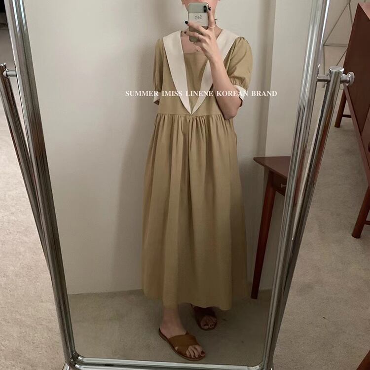 スリーブドレス サマールーズAラインロングスカート 夏物 ビッグFスモールZ韓国81871031880