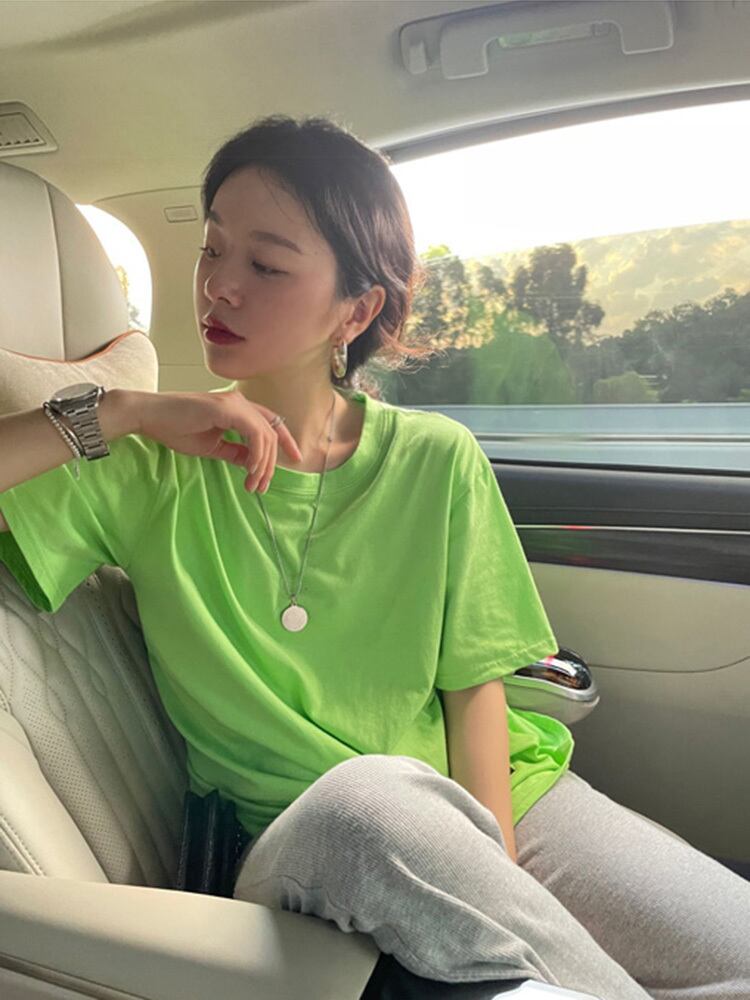 ラウンドネックルーズTシャツ シャツ サマー薄手 レッド 夏物 Oネック ビッグFスモールZ韓国19937368308